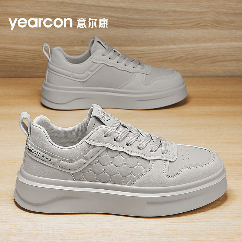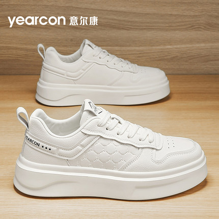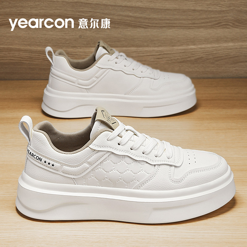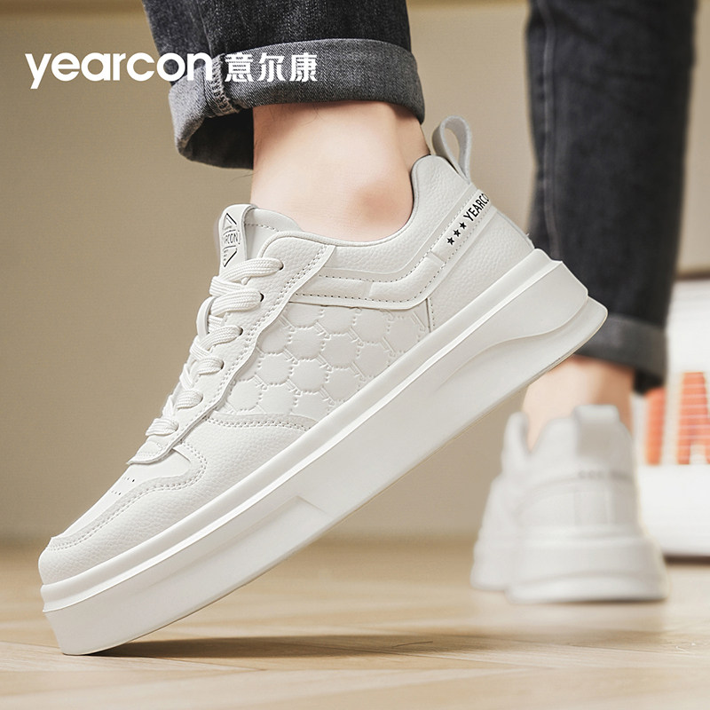 意尔康小白鞋男夏季透气2025新款高级感时尚白色板鞋厚底增高男鞋