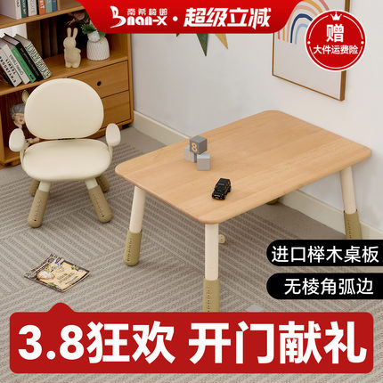 南希儿童实木方桌高度可调节学习手工桌宝宝幼儿园阅读写字儿童桌