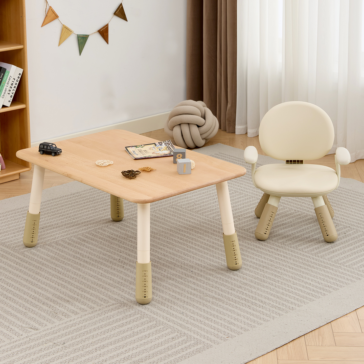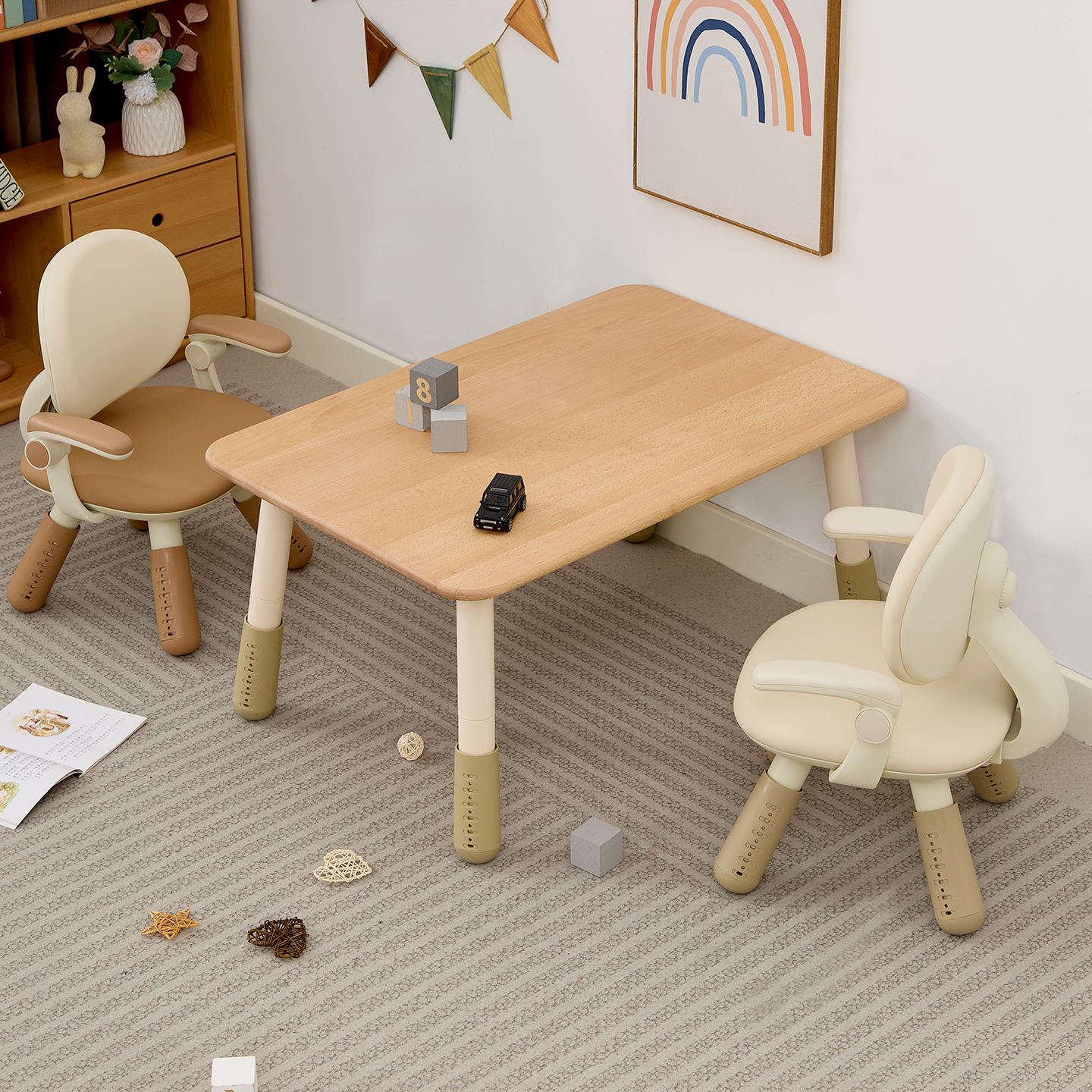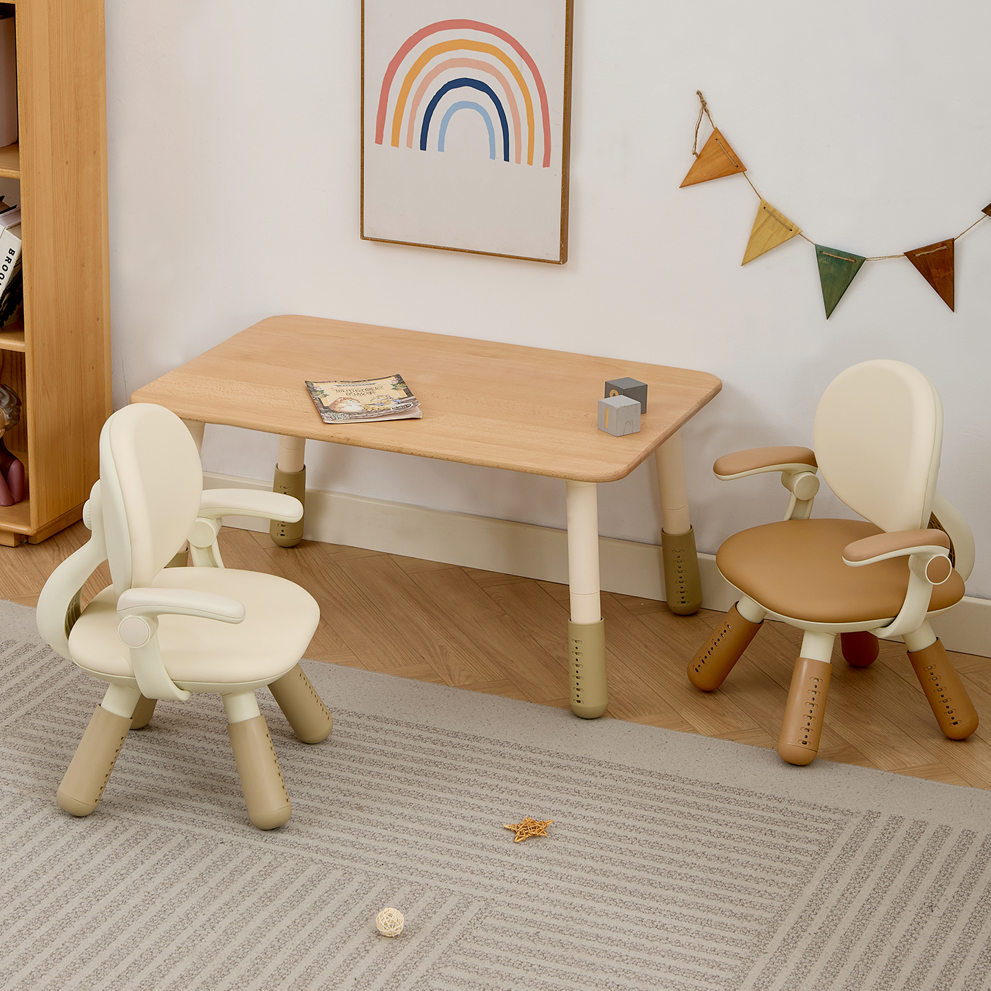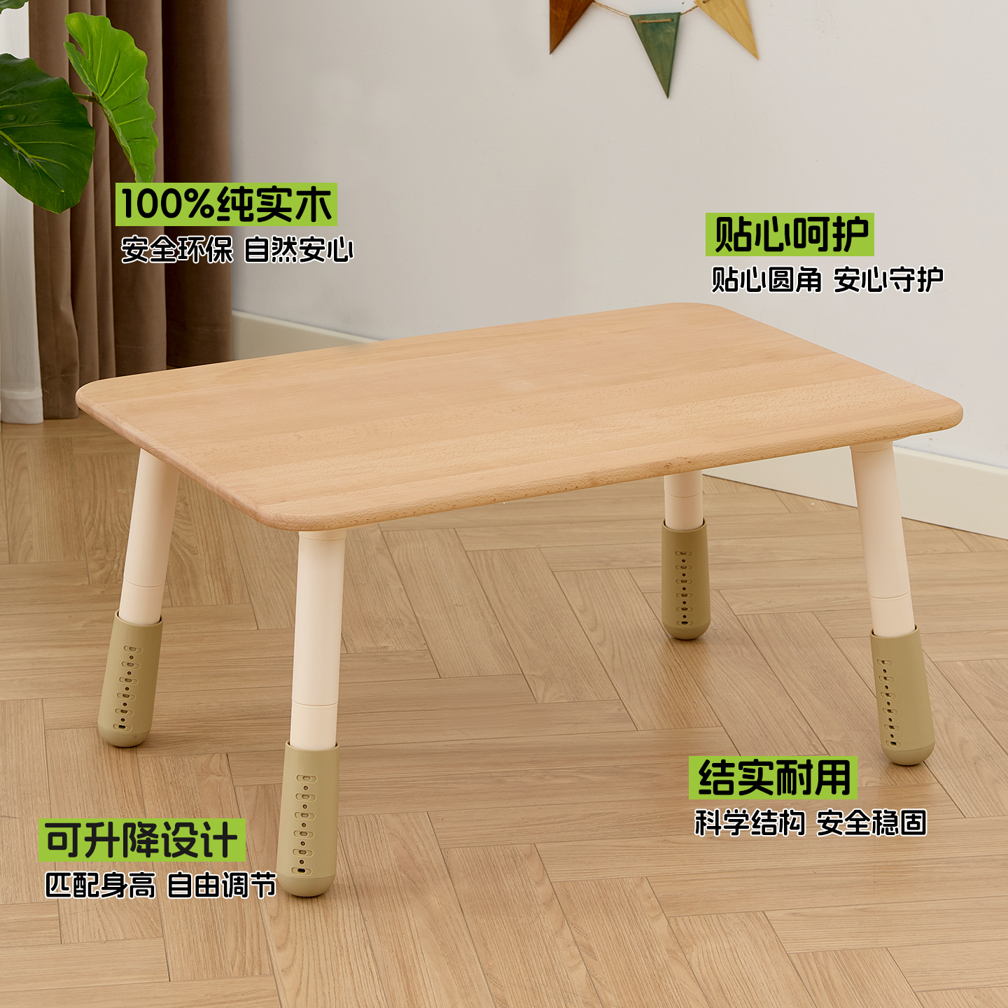 南希实木儿童桌高度可调圆弧边