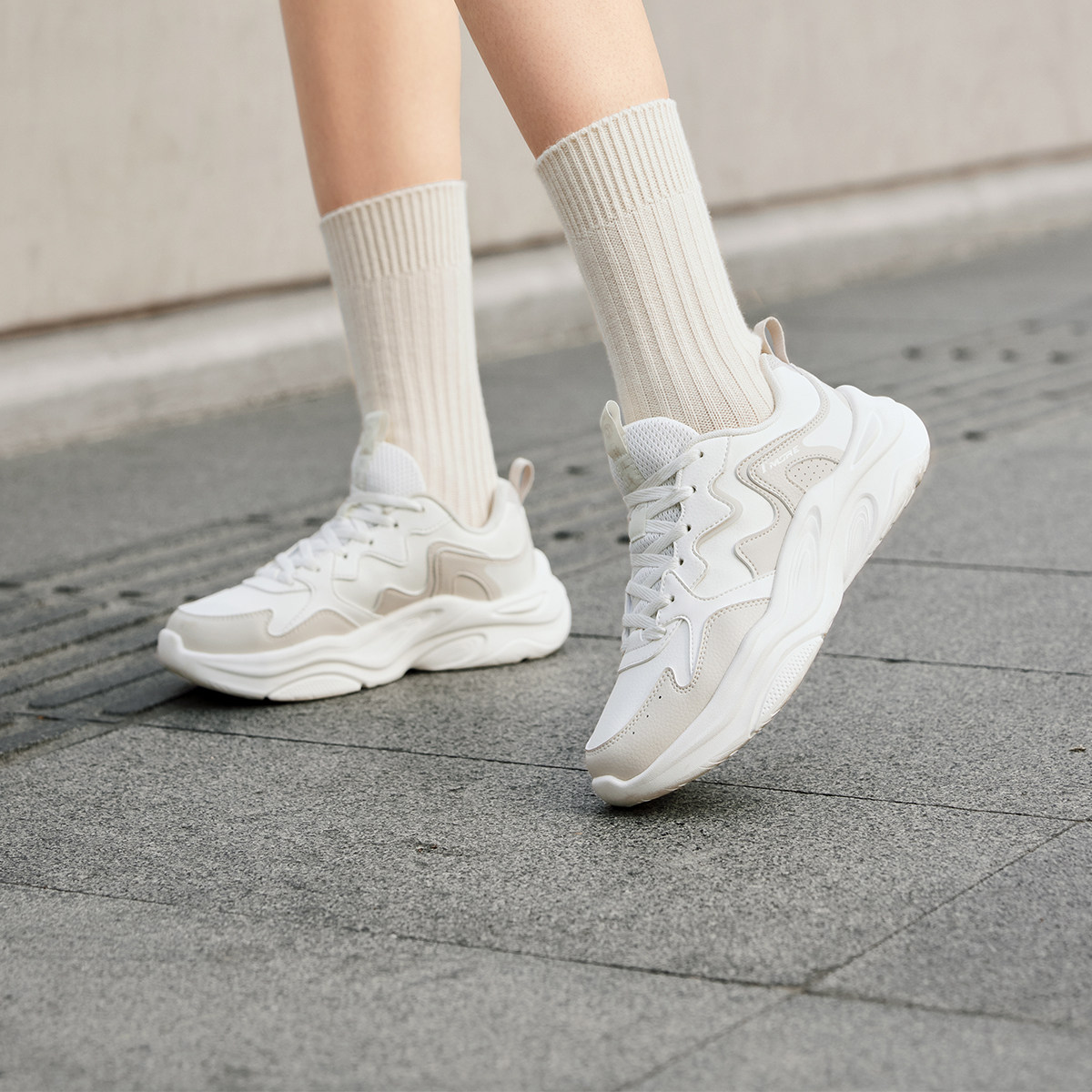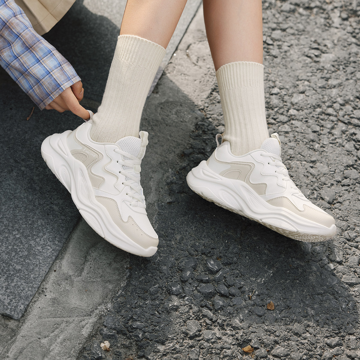 361度女鞋革面鞋子2026秋季新款复古文化鞋软底舒适休闲老爹鞋女