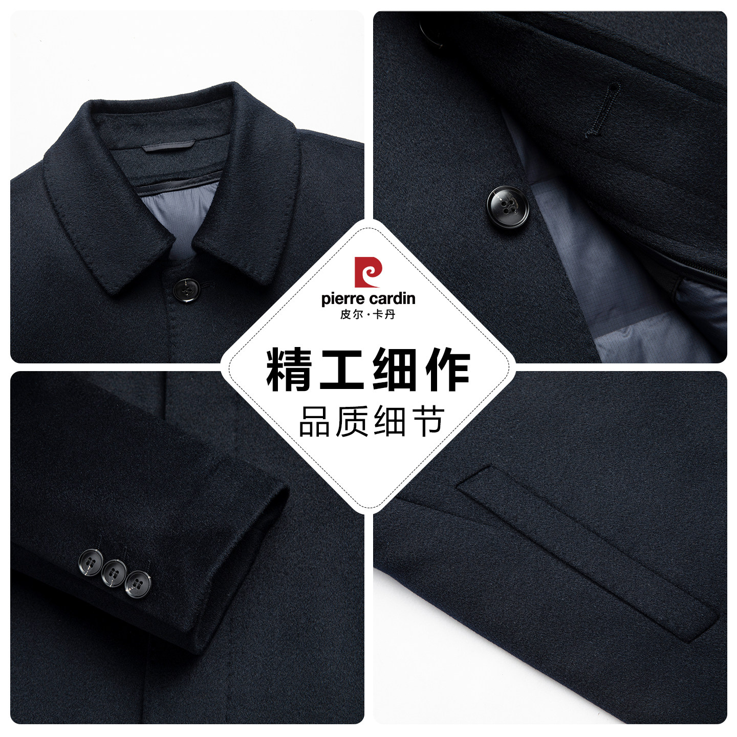 皮尔卡丹羊绒翻领商务行政大衣