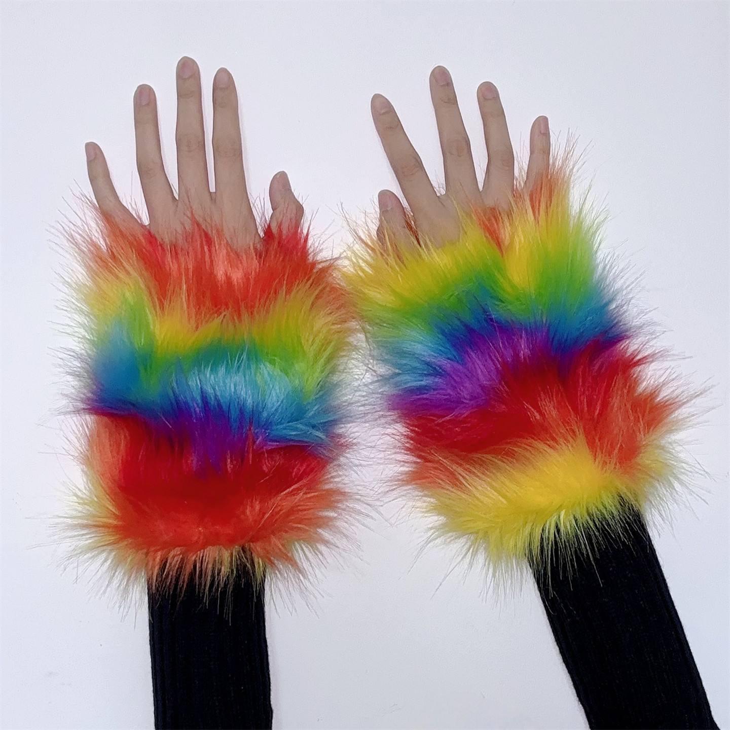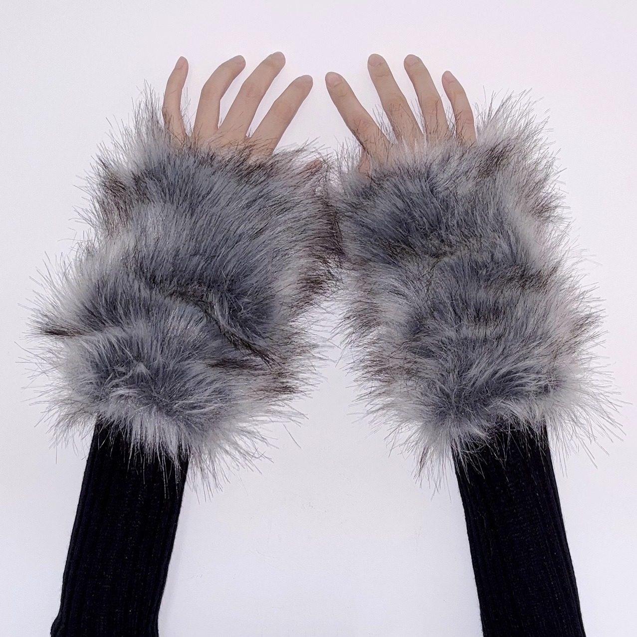 Y2K千禧辣妹decora亚比文化手套秋冬毛毛绒小众设计ins风半指袖套