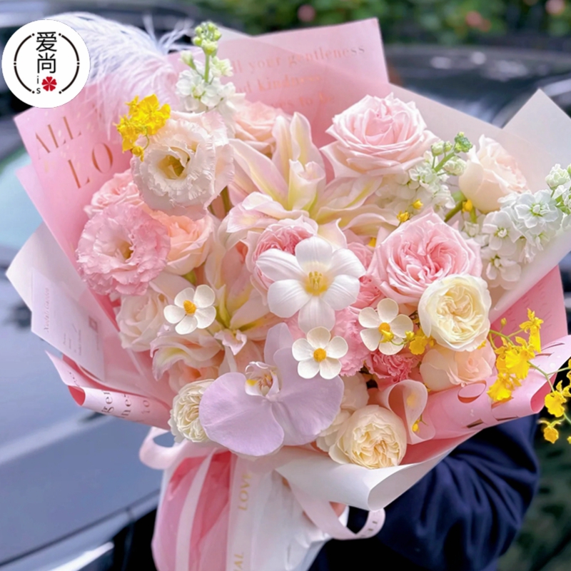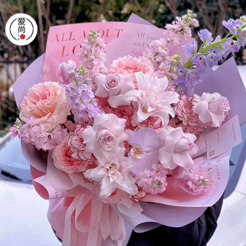 流光溢彩烫金粉色系花束包装纸鲜花包装纸花艺海报油画背景牛皮纸