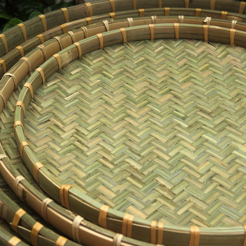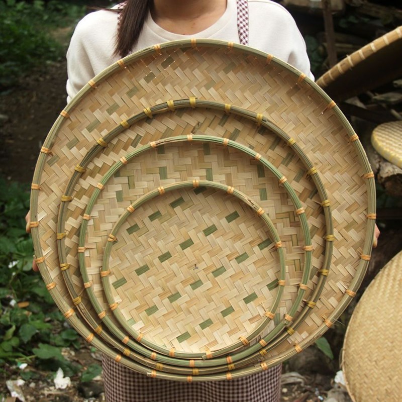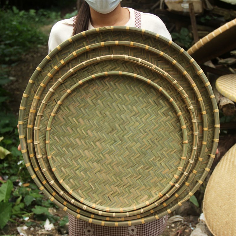 竹编圆簸箕无孔竹筛子家用晾晒网竹制品竹匾绘画装饰舞蹈道具