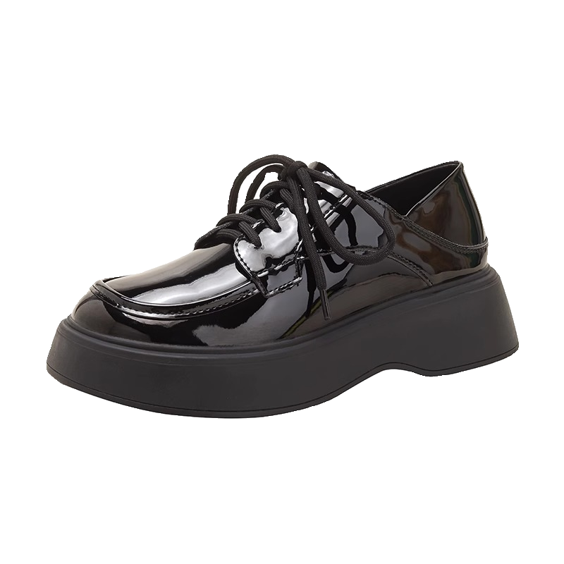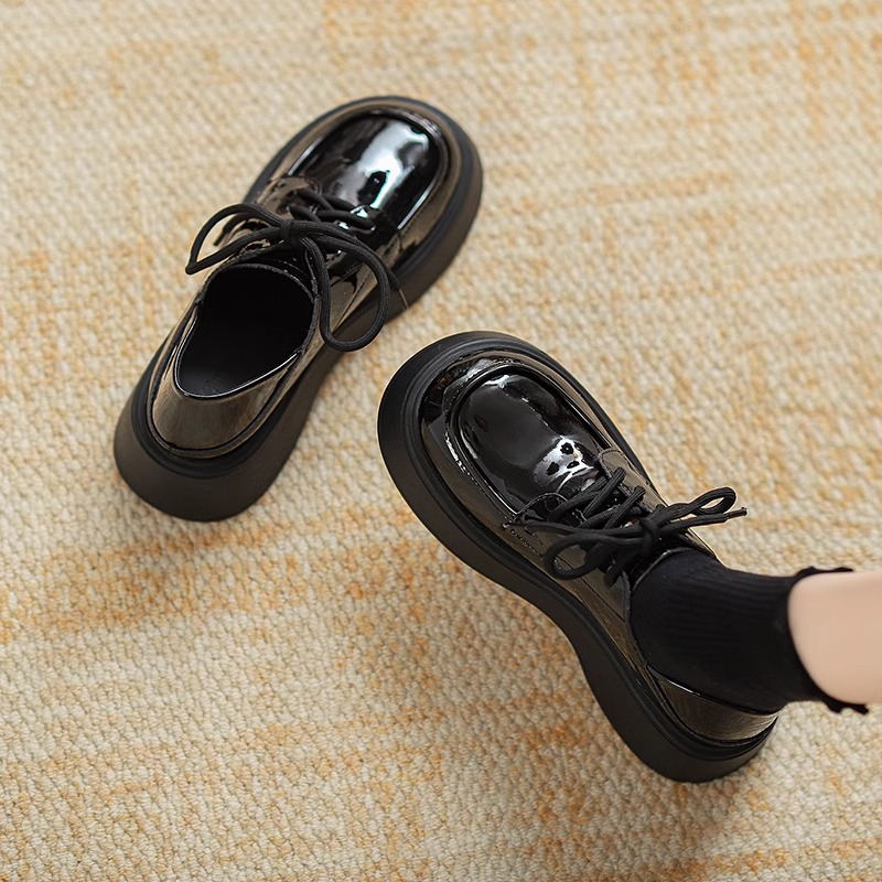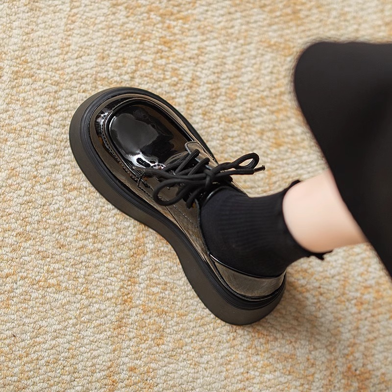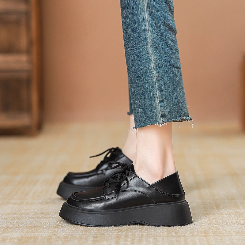 黑色厚底小皮鞋女2024新款英伦风春秋季配裙子加绒单鞋系带乐福鞋