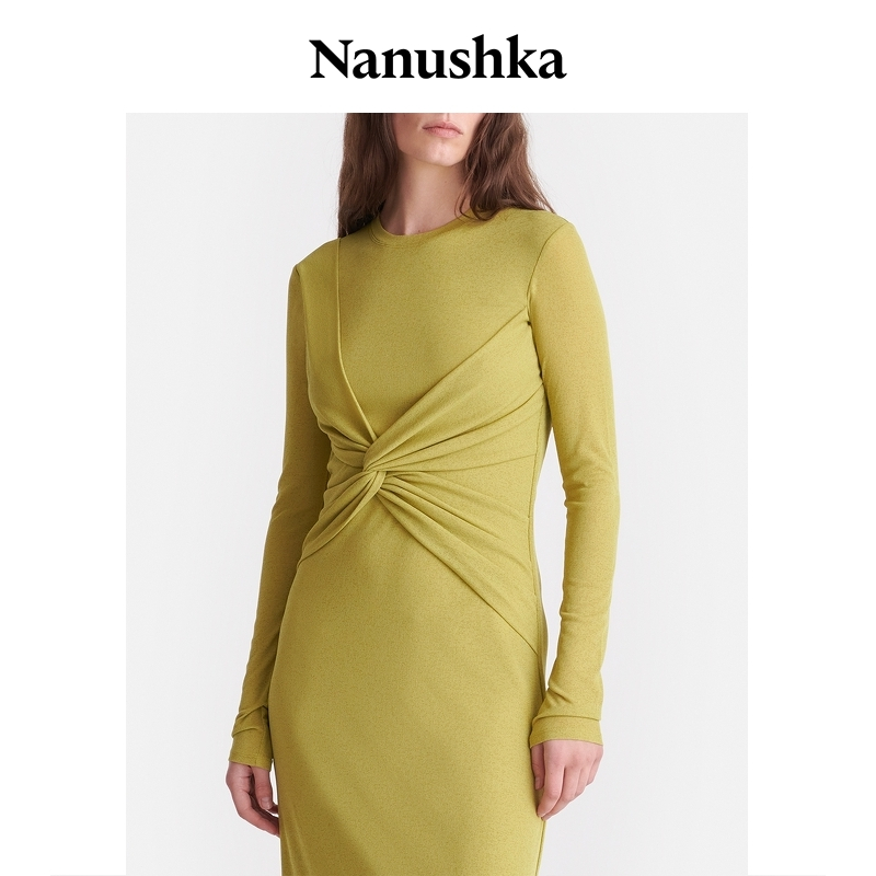 【季末折扣】NANUSHKA 女士 ROZAL 开心果绿纽结连衣裙