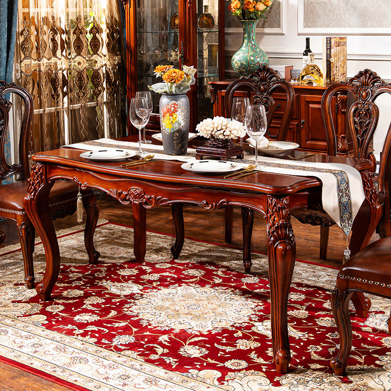 圣蒂伯爵美式实木餐桌欧式餐厅成套家具饭厅餐椅组合长方形饭桌