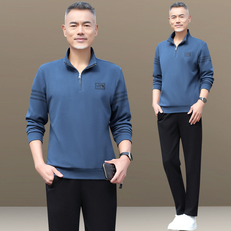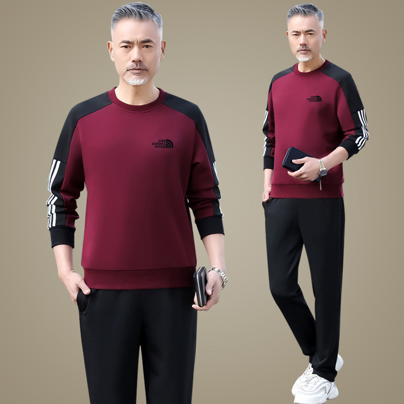 中年爸爸运动服套装男春秋季中老年人套头立领父亲休闲卫衣两件套