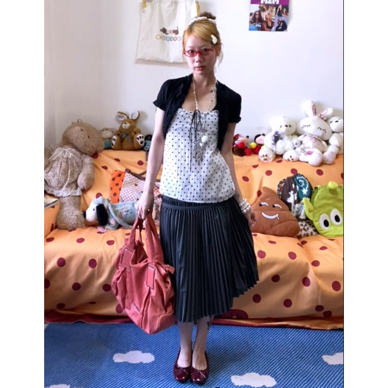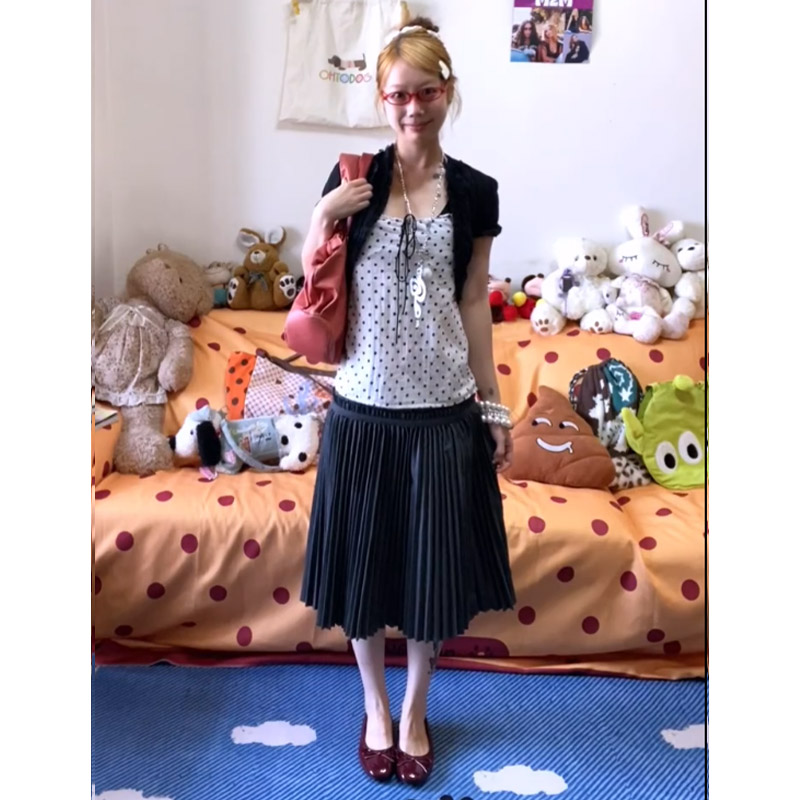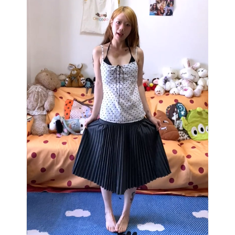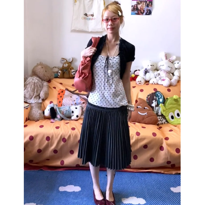 设计感中腰毛边细褶半身裙女休闲百搭黑色西装A字伞摆版型百褶裙