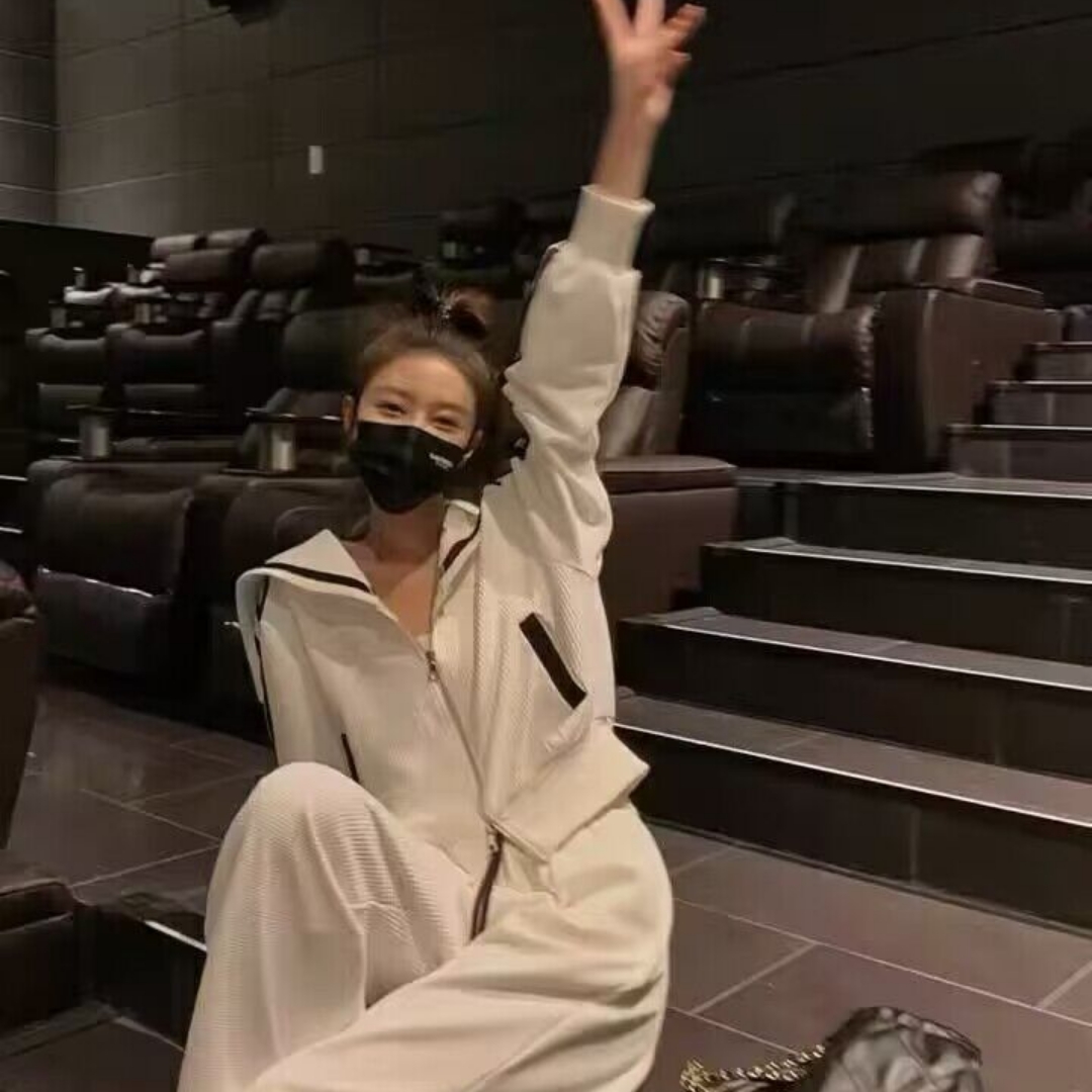 秋季新款女装白色卫衣套装减龄洋气海军领上衣运动休闲裤子两件套
