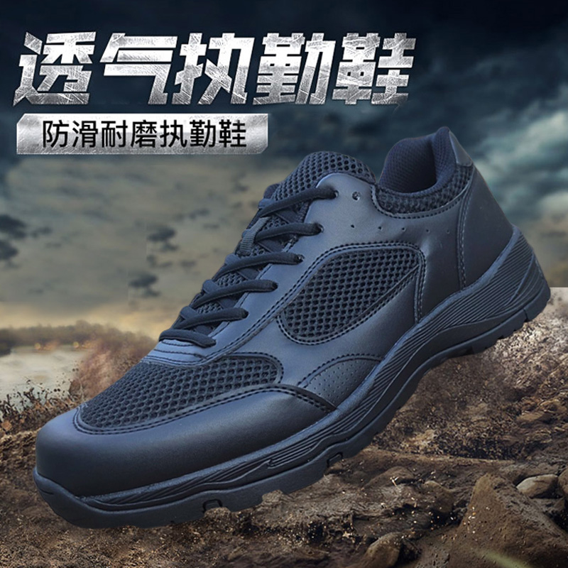 夏季作训鞋男黑色执勤巡逻鞋轻便跑步训练鞋体能运动网布鞋透气鞋