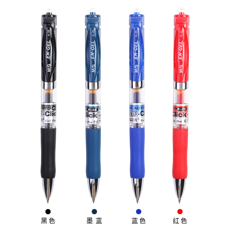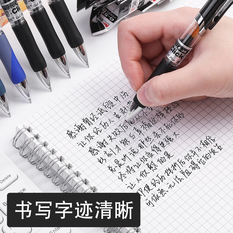 晨光按动中性笔学生用K35水性签字笔芯0.5mm按压式墨蓝黑红笔水笔考试碳素子弹头圆珠笔教师办公文具mg
