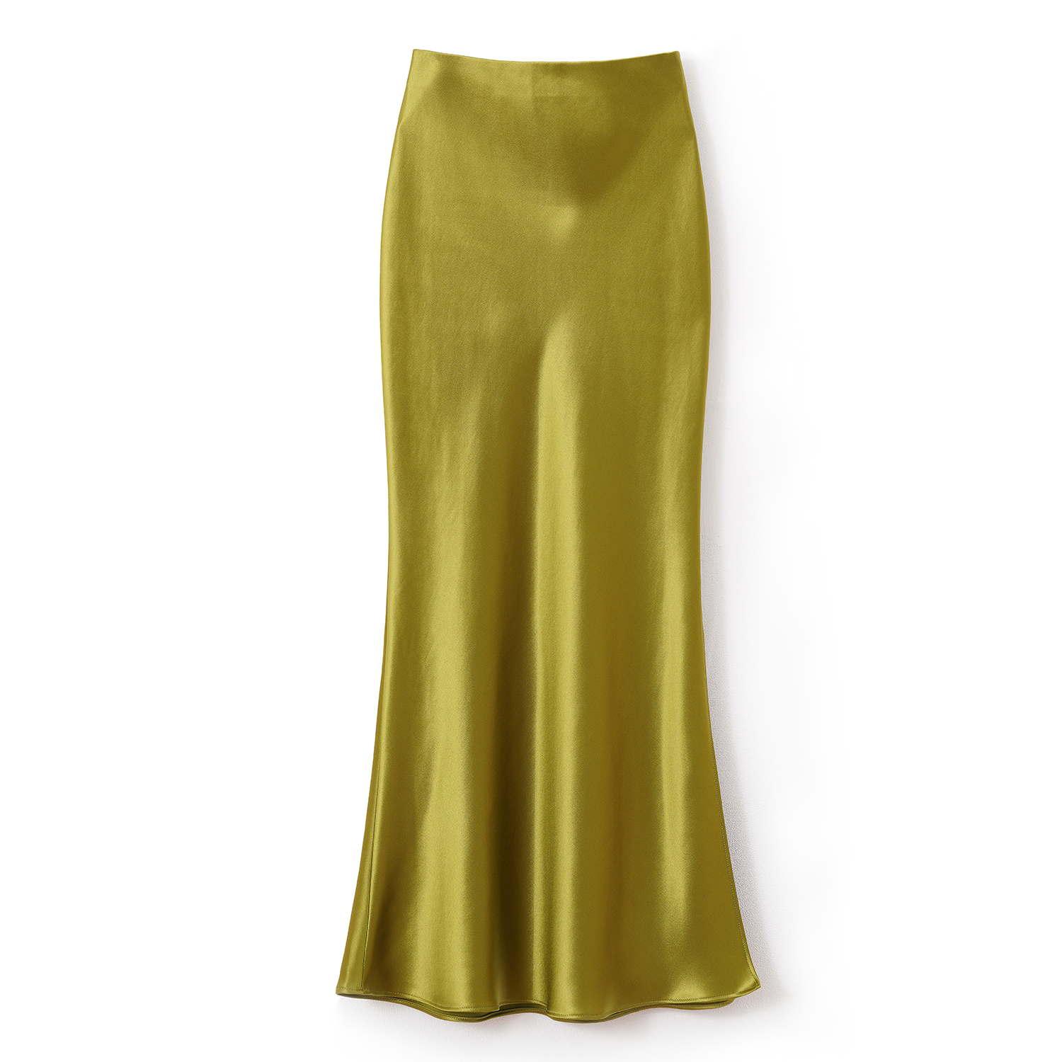 醋酸缎面拖地裙鎏光垂感斜裁半身裙高个子加长款高腰包臀开叉裙子