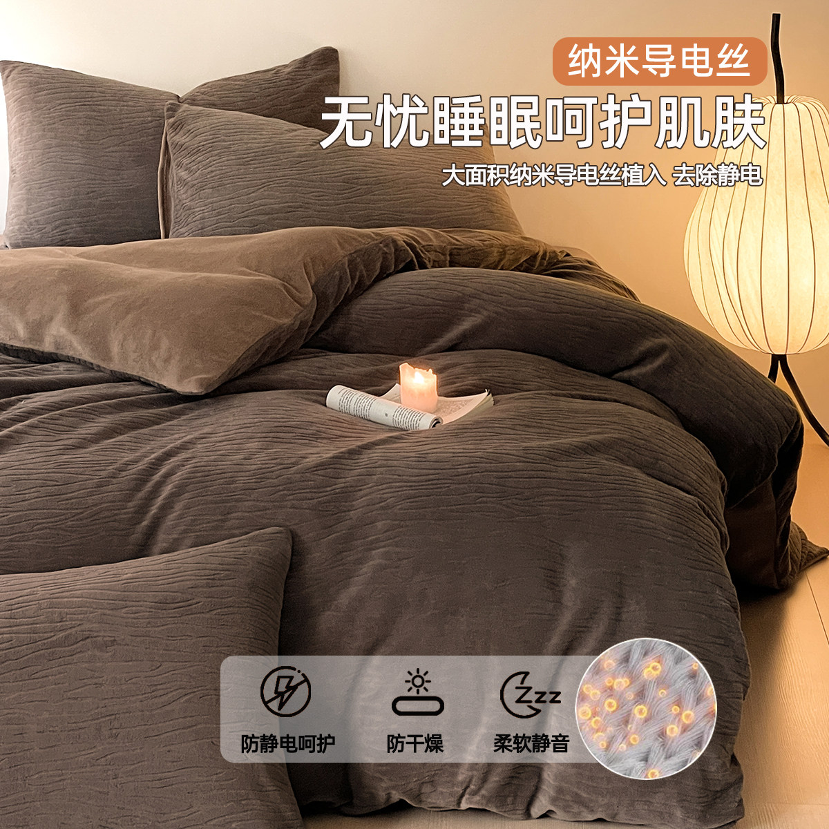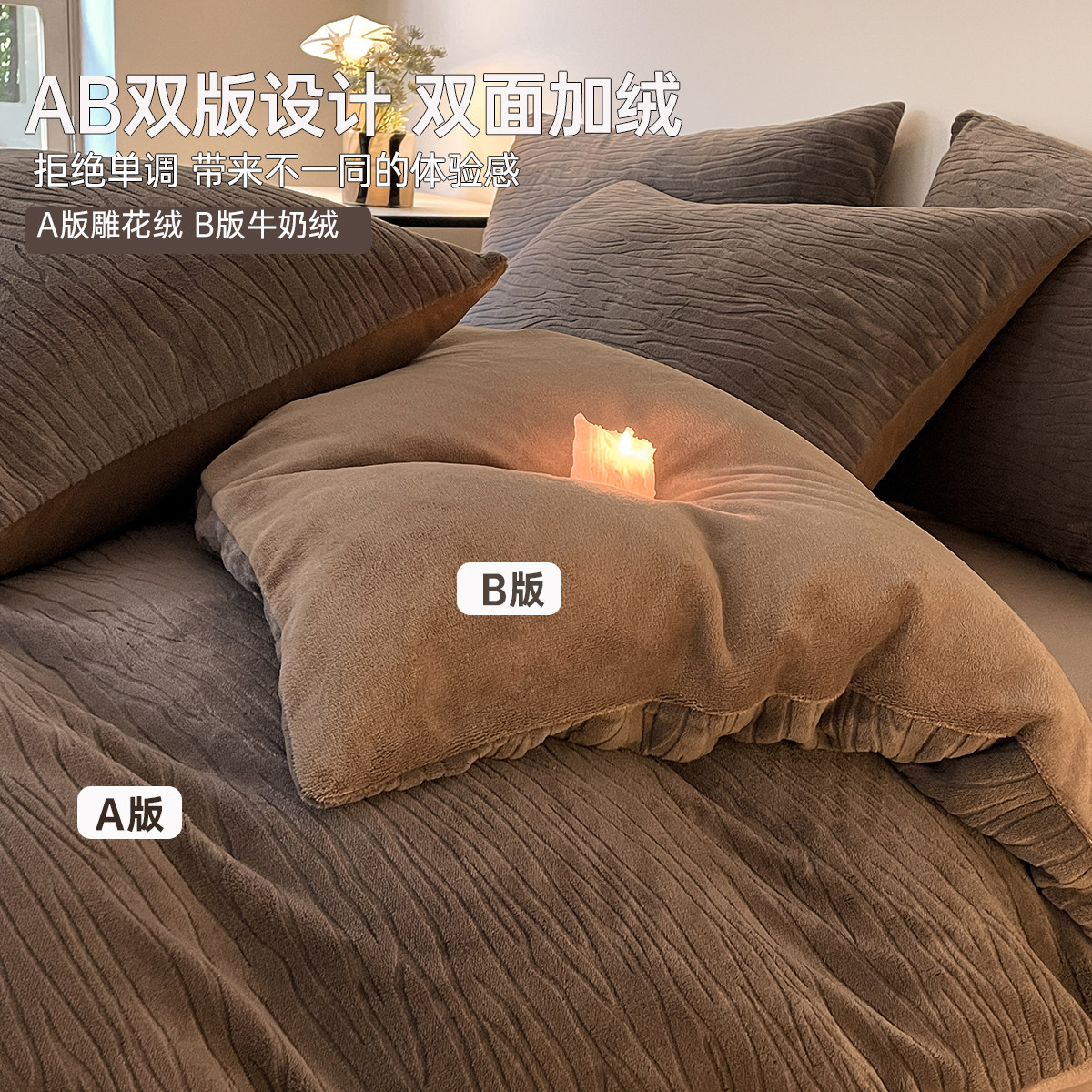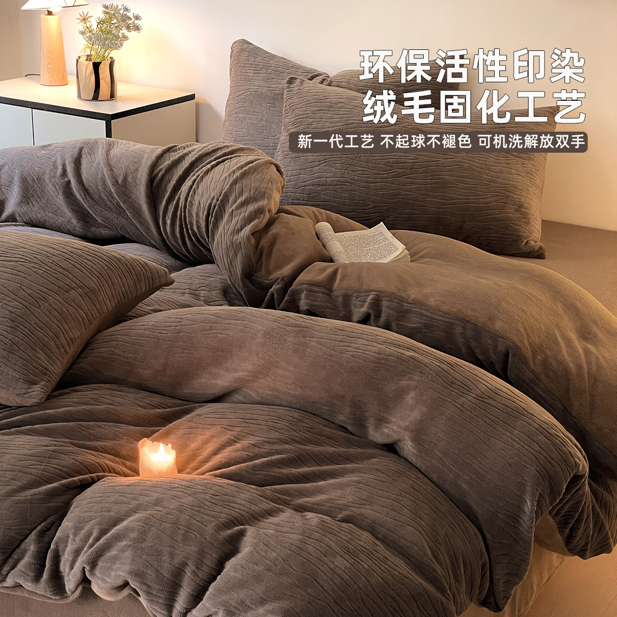 高端雕花牛奶绒四件套秋冬珊瑚绒被套2025新款男士床单床上用品三