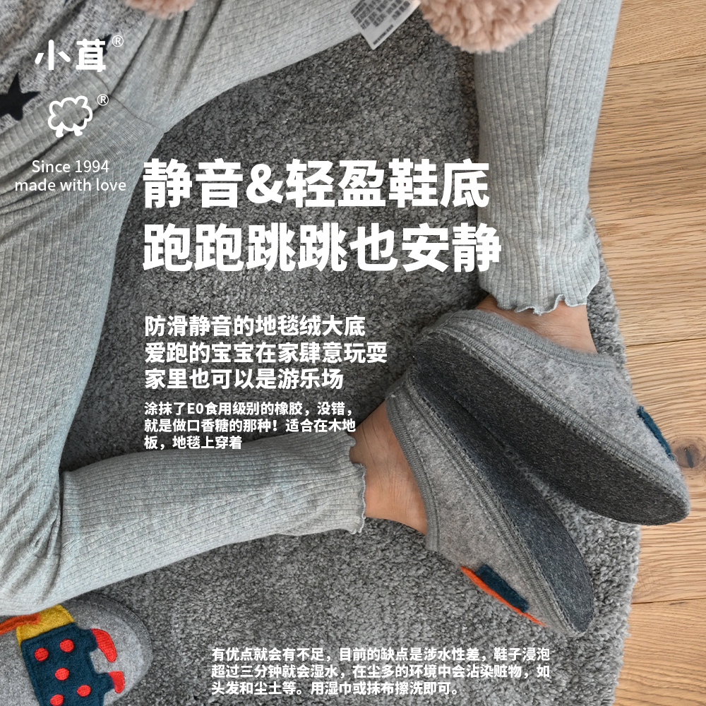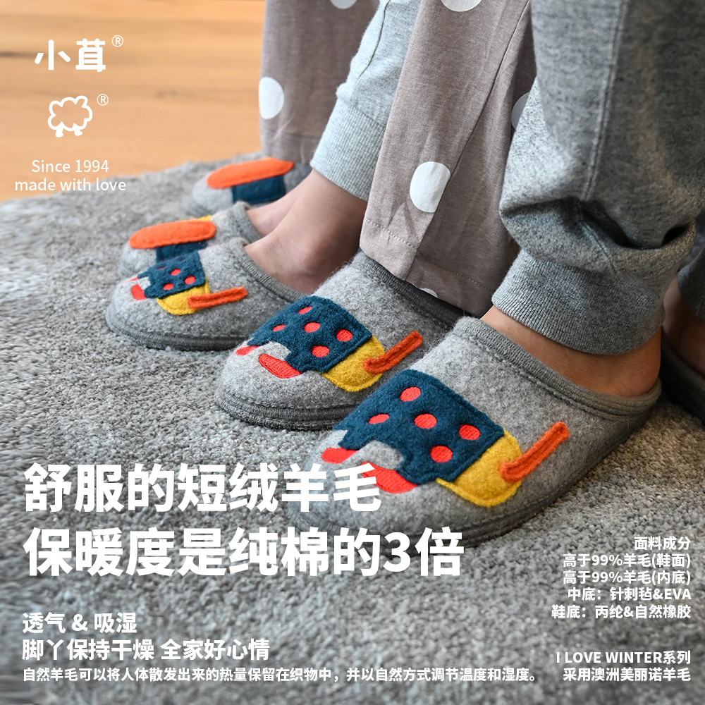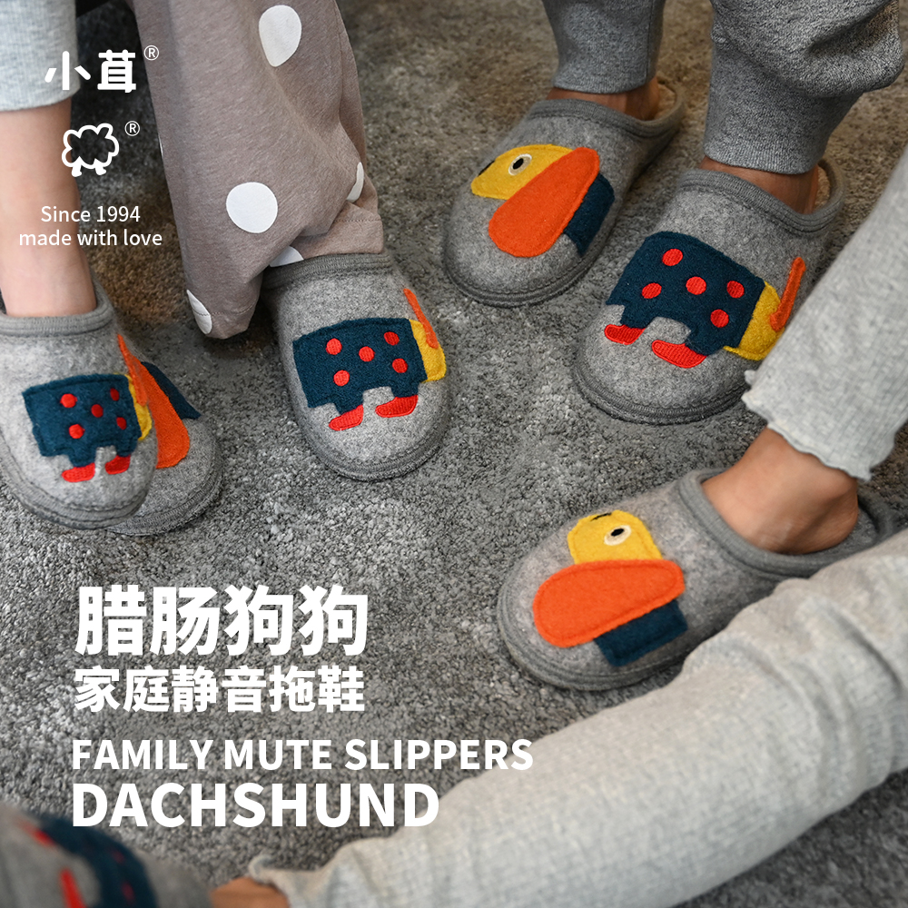 小茸 亲子拖鞋儿童家居鞋纯羊毛透气室内鞋腊肠狗软底静音地板鞋