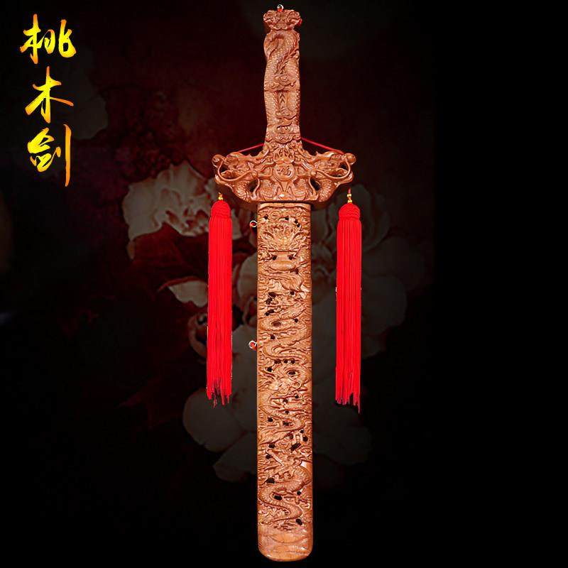 正宗肥城桃木剑道士七星挂件木雕摆件婴儿童随身家居客厅工艺品