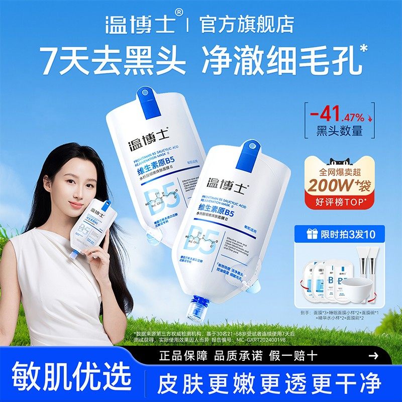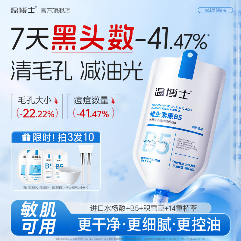 温博士B5清洁面膜水杨酸毛孔去黑头闭口粉刺泥膜控油舒缓补水收缩