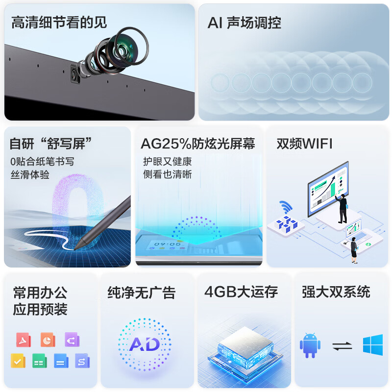 TCL会议平板一体机75英寸触控电视电子白板内置摄像头麦75V50EPro