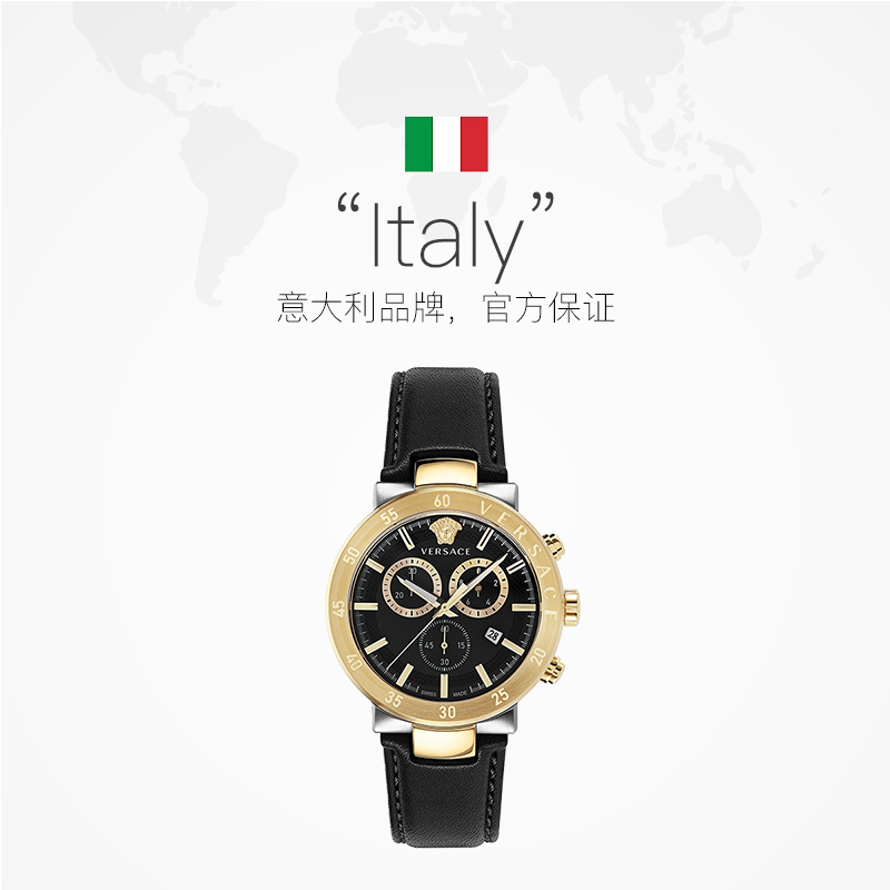 【自营】VERSACE/范思哲手表男瑞士名牌皮带大表盘石英表奢华礼物