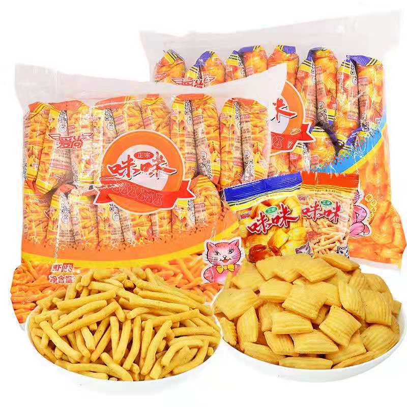 爱尚咪咪虾条休闲小吃薯片薯条虾条蟹味粒8090儿时怀旧零食大礼包