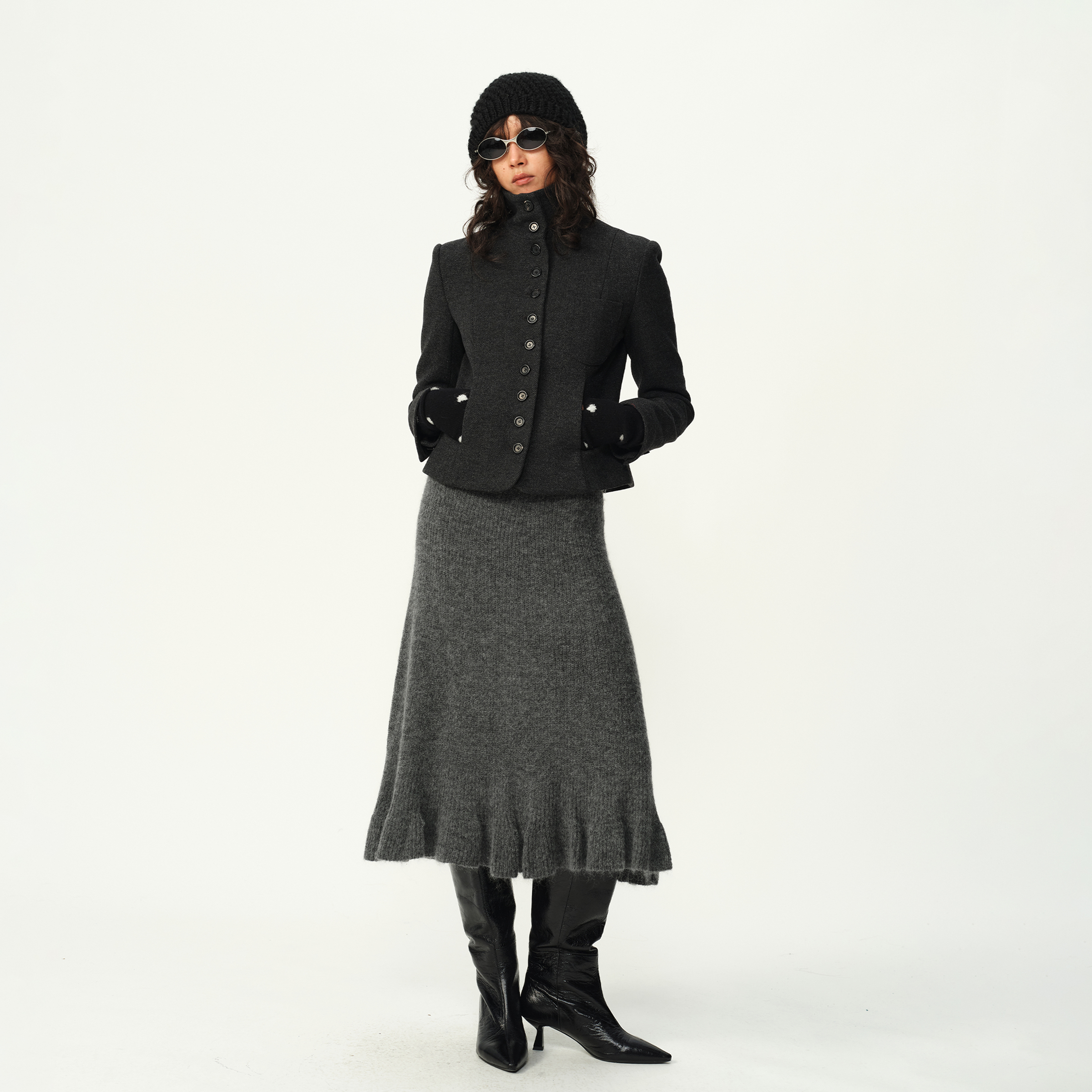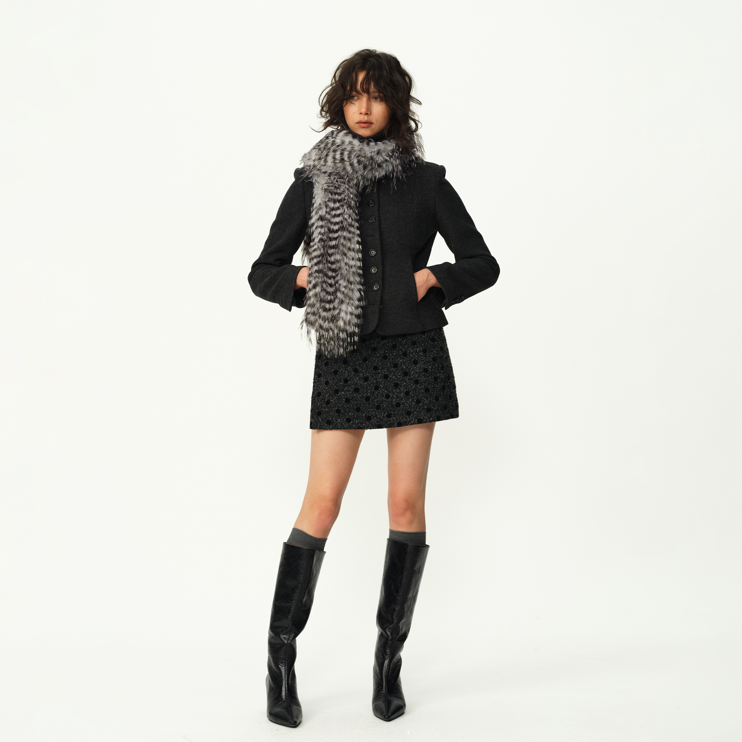 EVISTUB复古羊毛人字纹毛呢外套