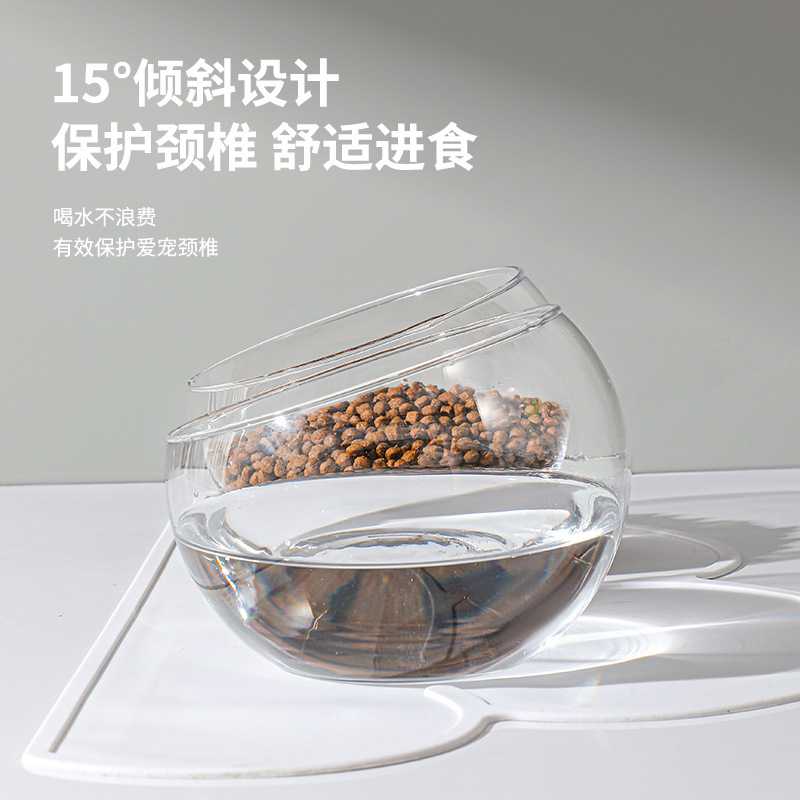 新款直销猫碗倾斜碗玻璃防翻双碗食盆狗碗猫咪喝水碗保护颈椎猫咪