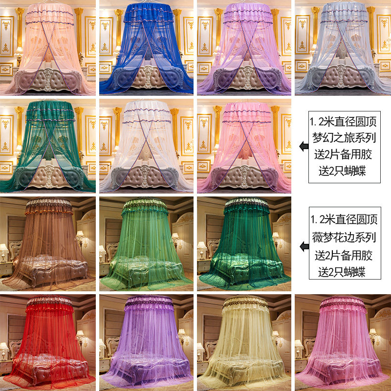 吊顶圆顶公主风加密蚊帐双人家用1.5/1G.8/2m米床落地吸顶免安装
