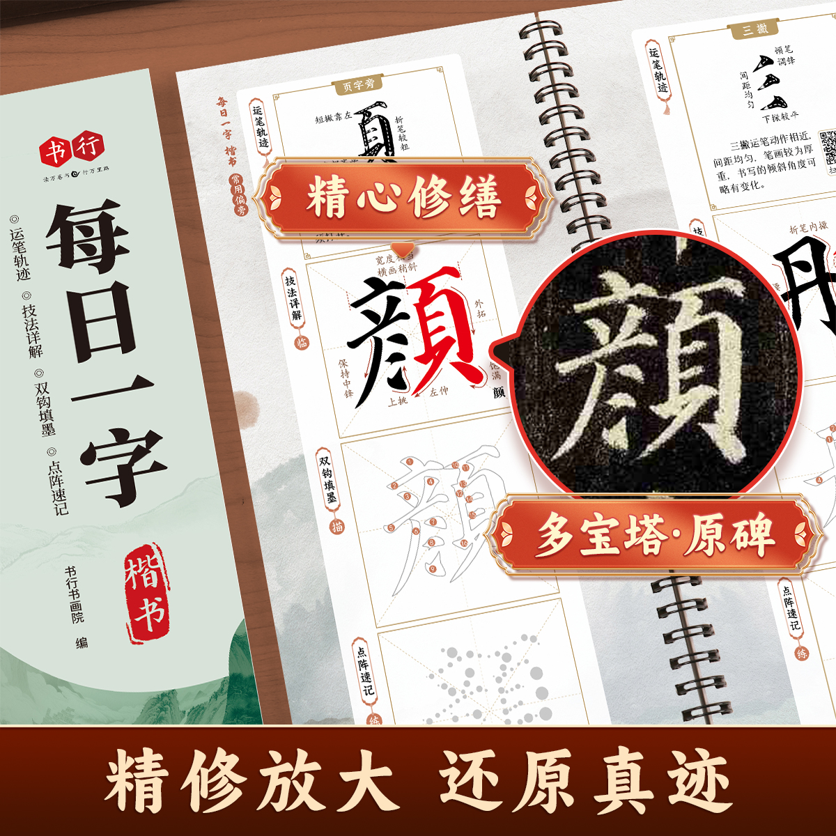 每日一字行书楷书单字书法软笔毛笔练字临摹字卡环装成人适用