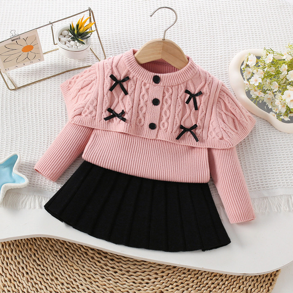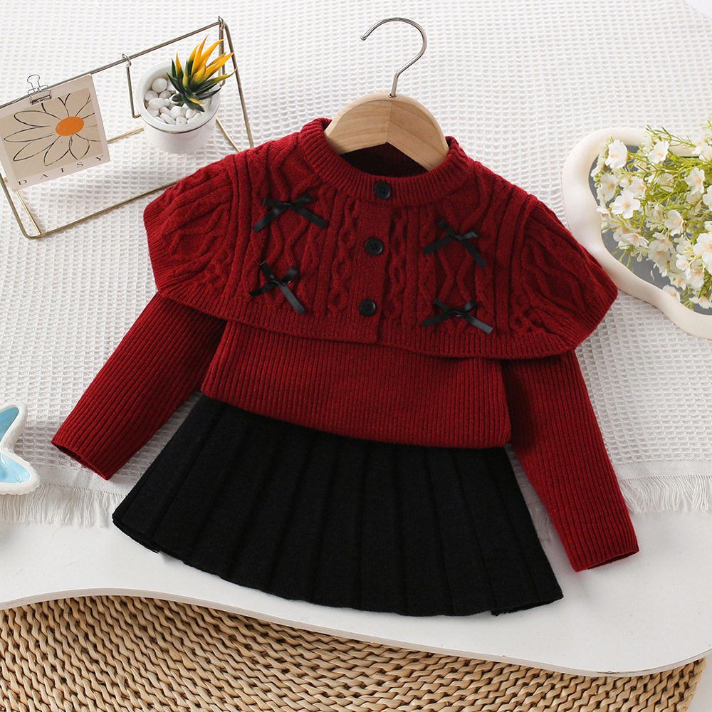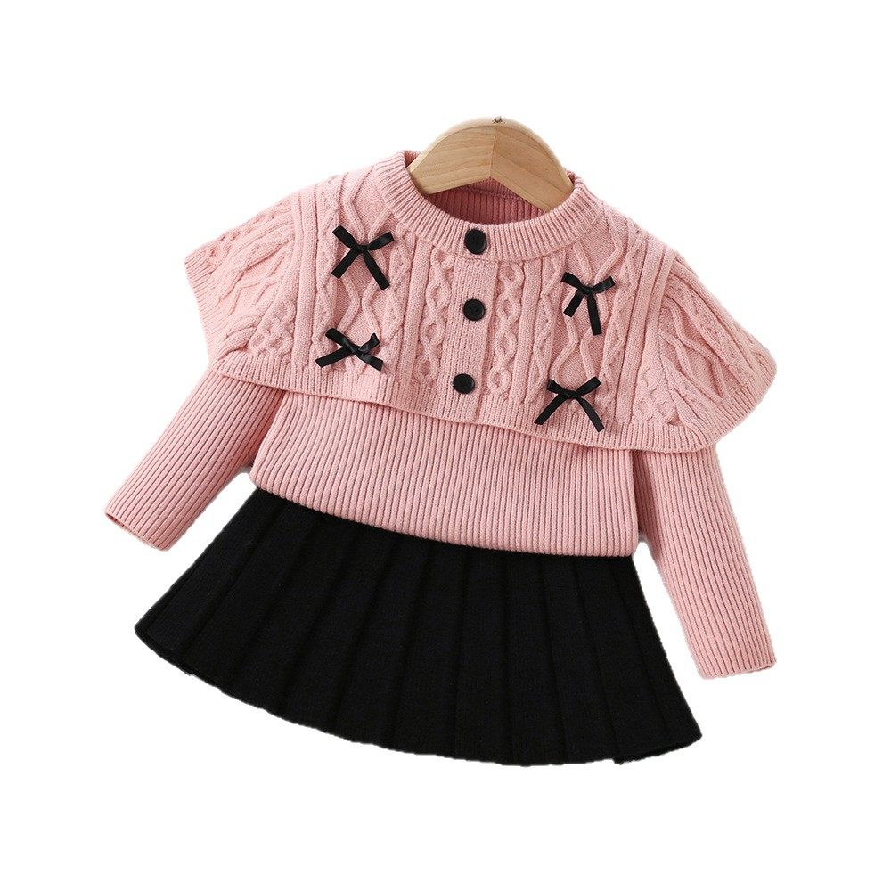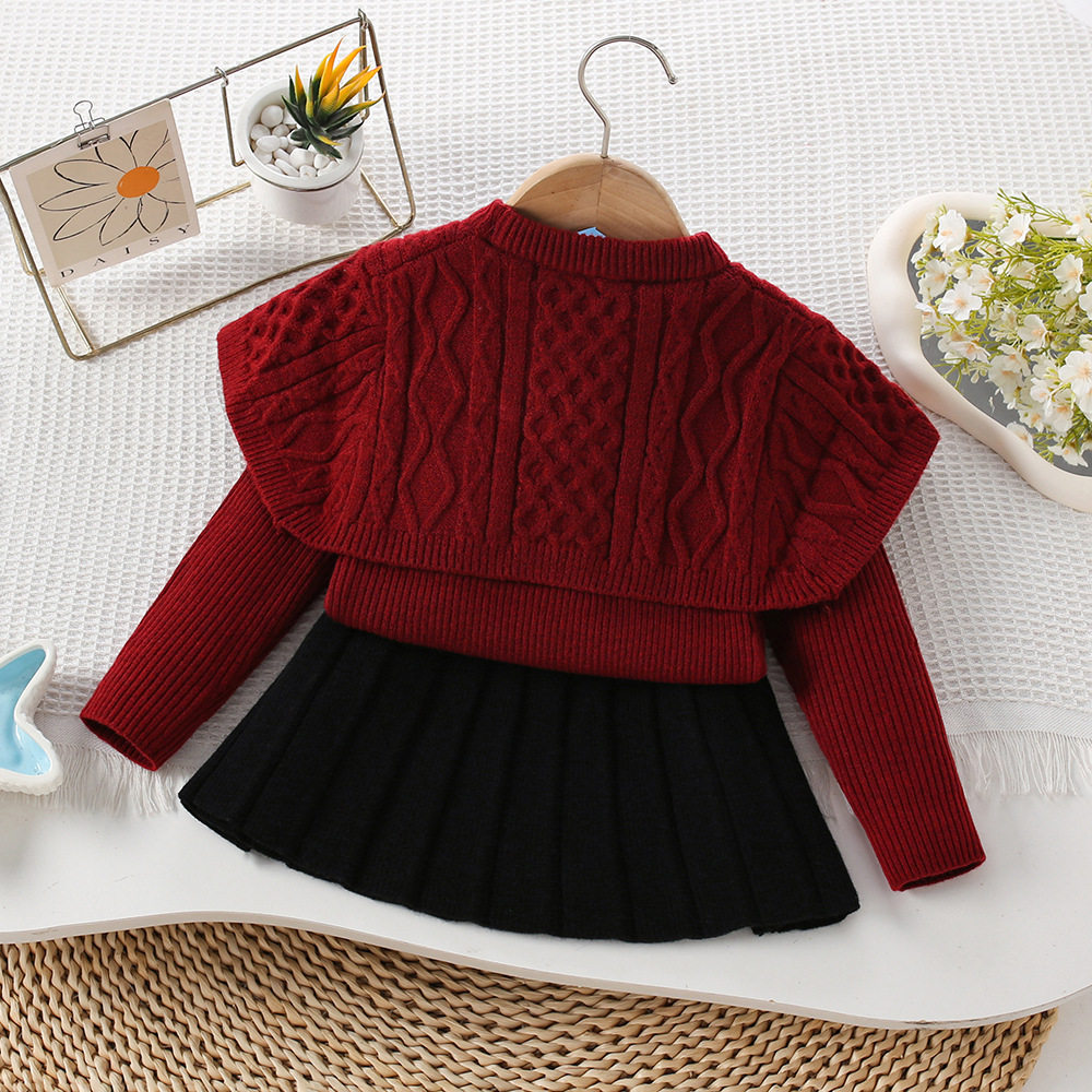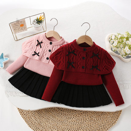 女童毛衣套装秋冬新款披肩麻花针织套裙韩版女宝宝洋气百搭公主裙