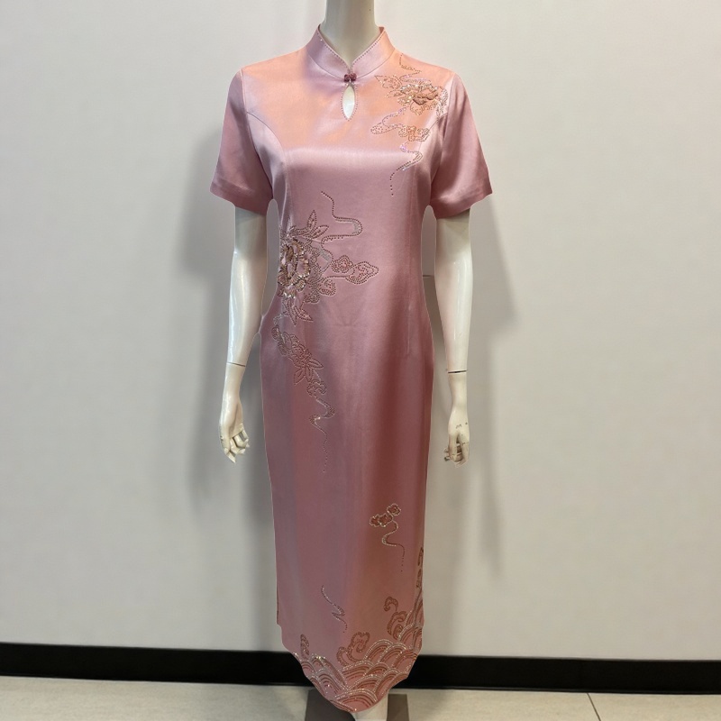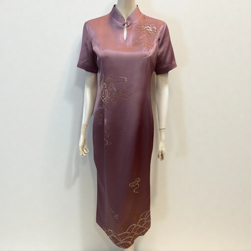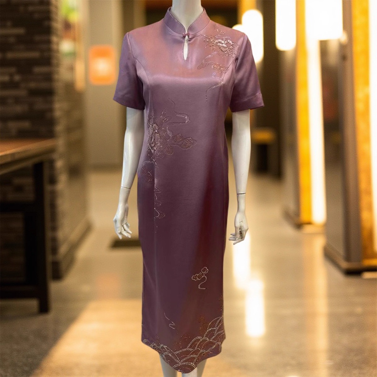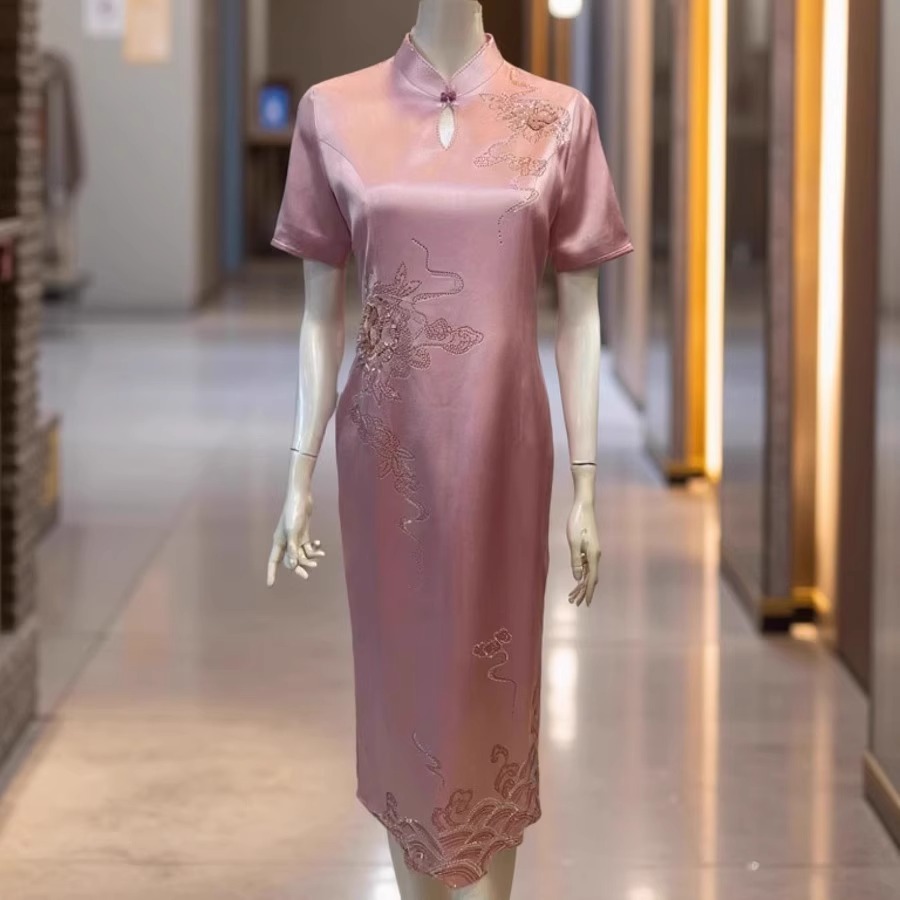 高端气质喜婆婆婚宴礼服改良旗袍春夏装喜妈妈醋酸缎连衣裙新中式