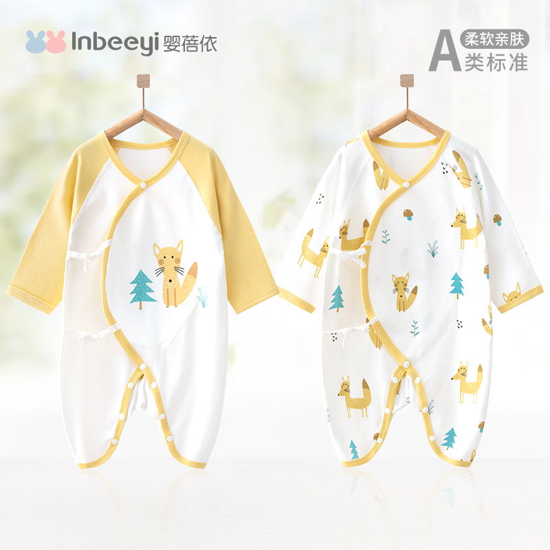 婴蓓依新生婴儿连体衣夏季满月初生宝宝衣服四季款哈衣纯棉和尚服