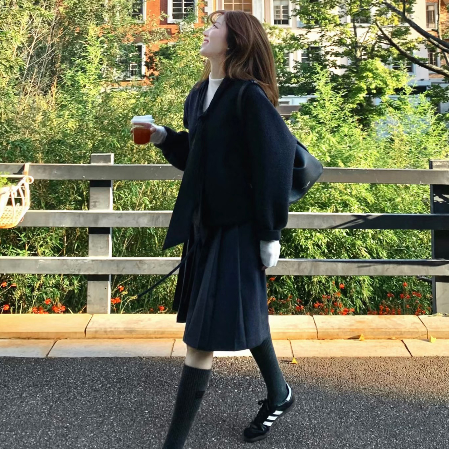 韩系极简风短款毛呢外套女秋冬装新款宽松气质百搭小个子呢子上衣