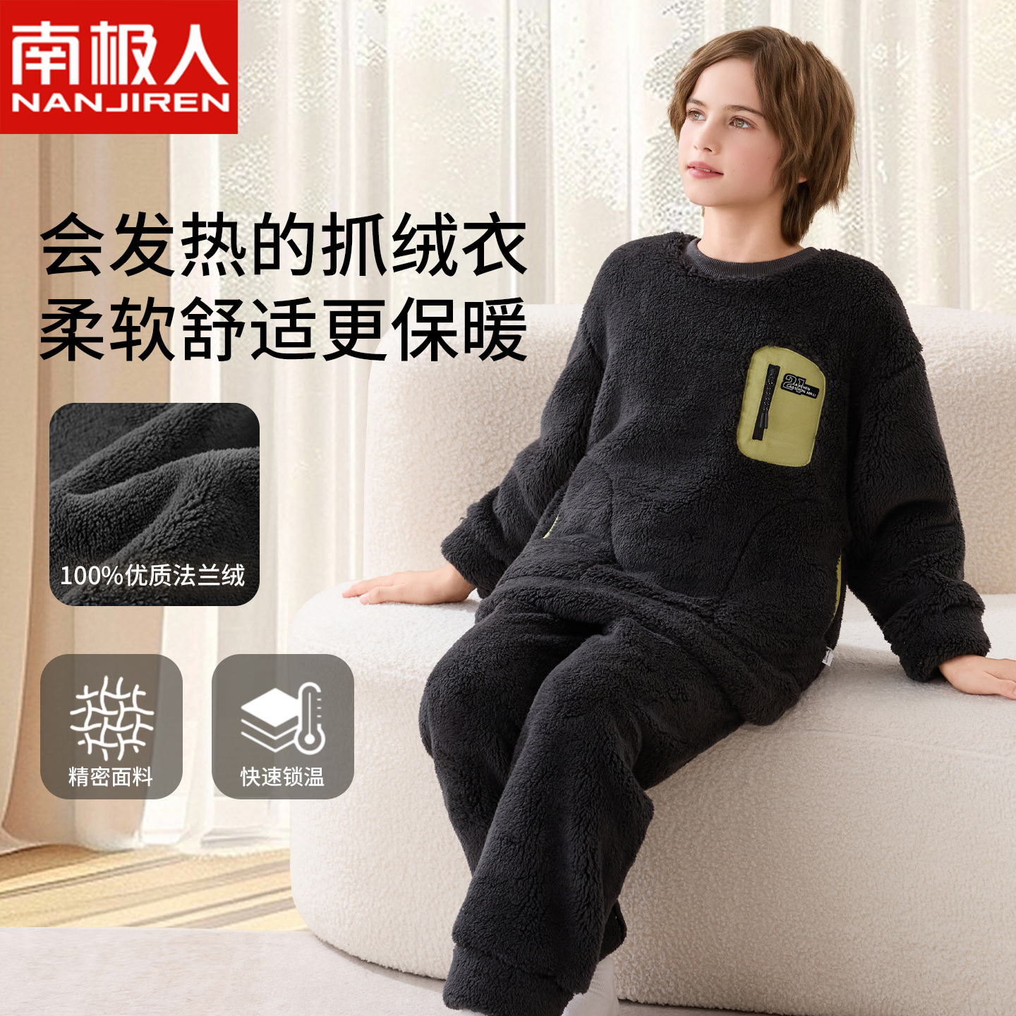 法兰绒睡衣男童2025秋冬珊瑚绒加厚保暖儿童中大童女孩家居服套装