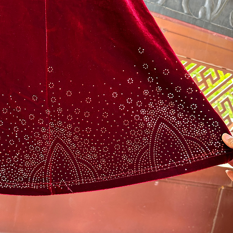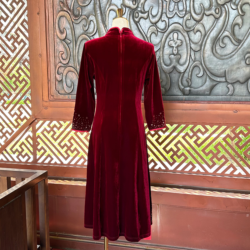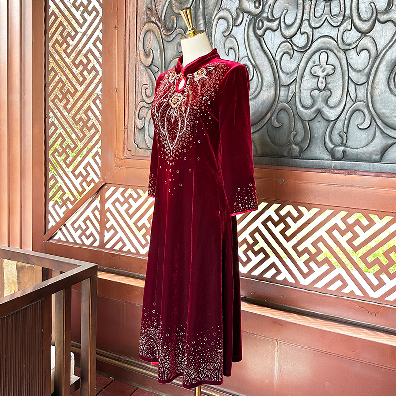 大码妈妈装婚宴礼服旗袍女春秋装新款婚礼喜婆婆高端丝绒连衣裙