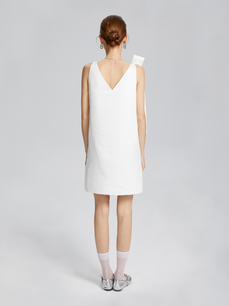 Fabrique 立体蝴蝶结飘带装饰V领无袖连衣裙女春夏新款长裙