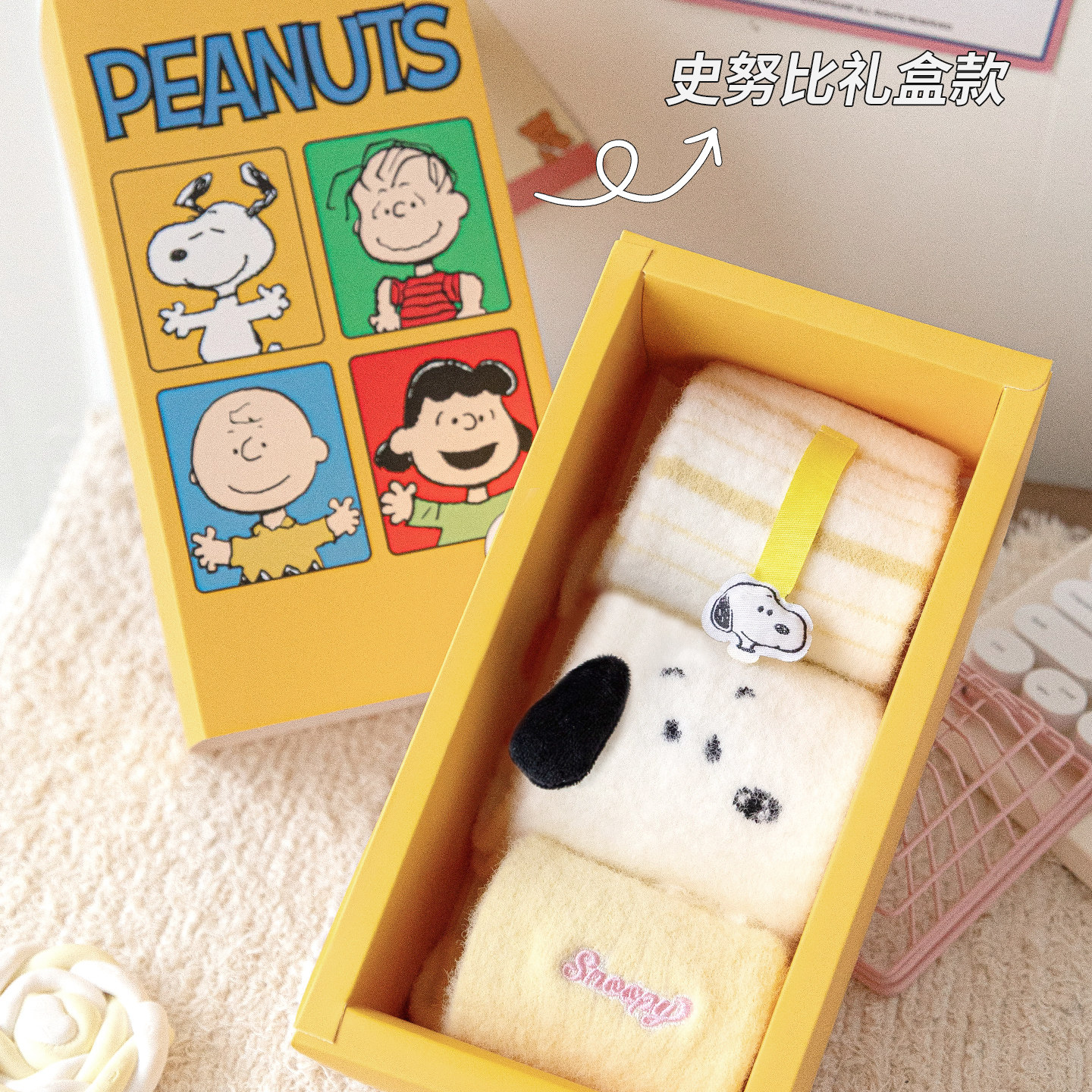 卡拉美拉史努比联名地板袜中筒袜礼盒款送礼保暖加厚卡通睡眠袜