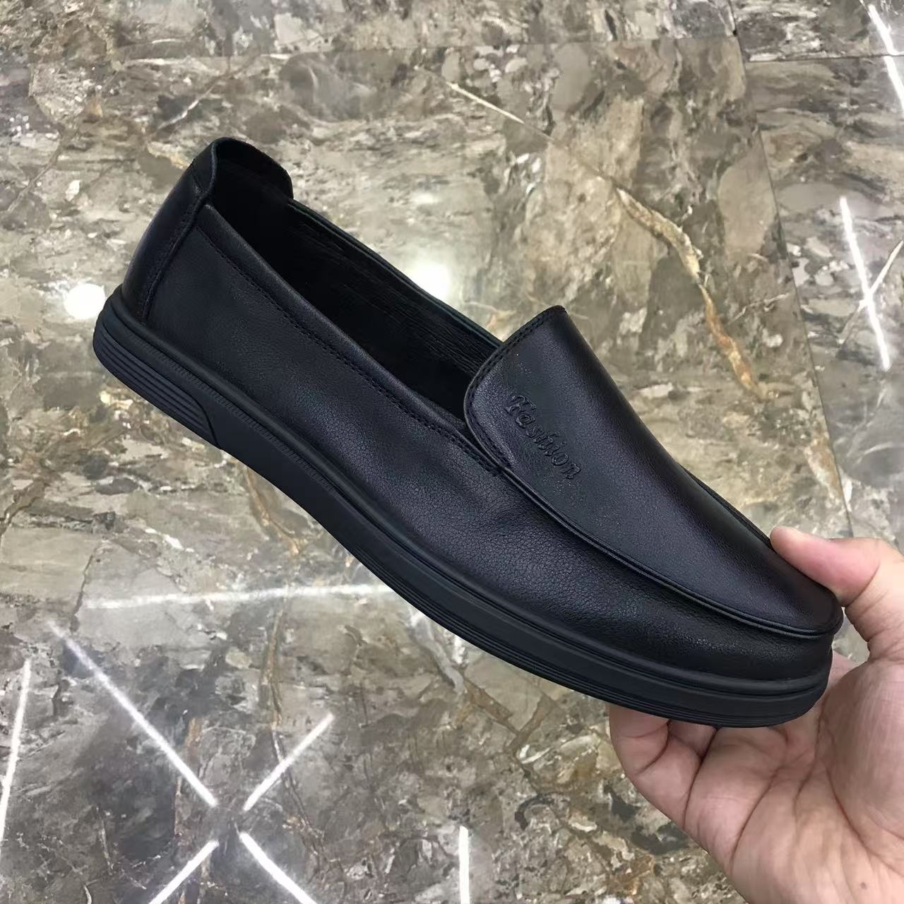 套脚懒人鞋男2025春夏新款真皮镂空透气洞洞男鞋休闲商务浅口皮鞋