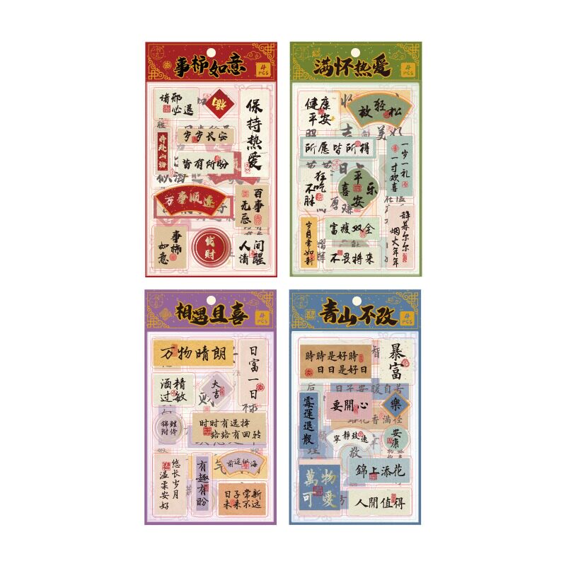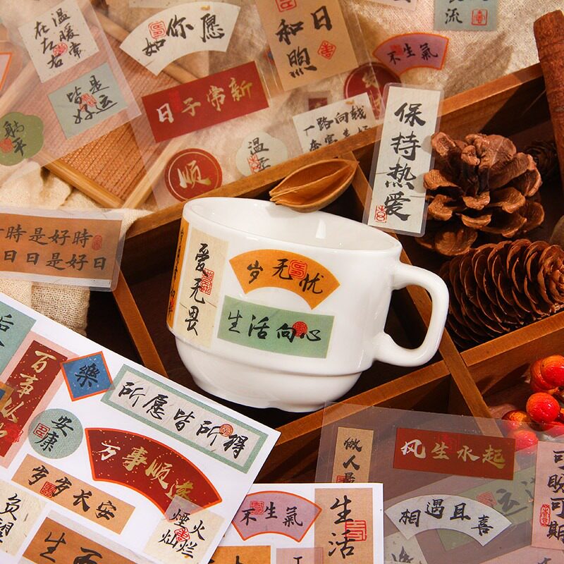 中国风爆款趣味书法文字贴纸拼贴手帐diy装饰素材手账励志贴画ins