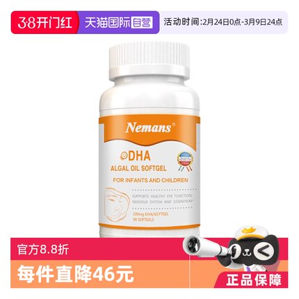 【自营】纽曼思(原名纽曼斯)进口藻油DHA婴幼儿&儿童可食用90粒