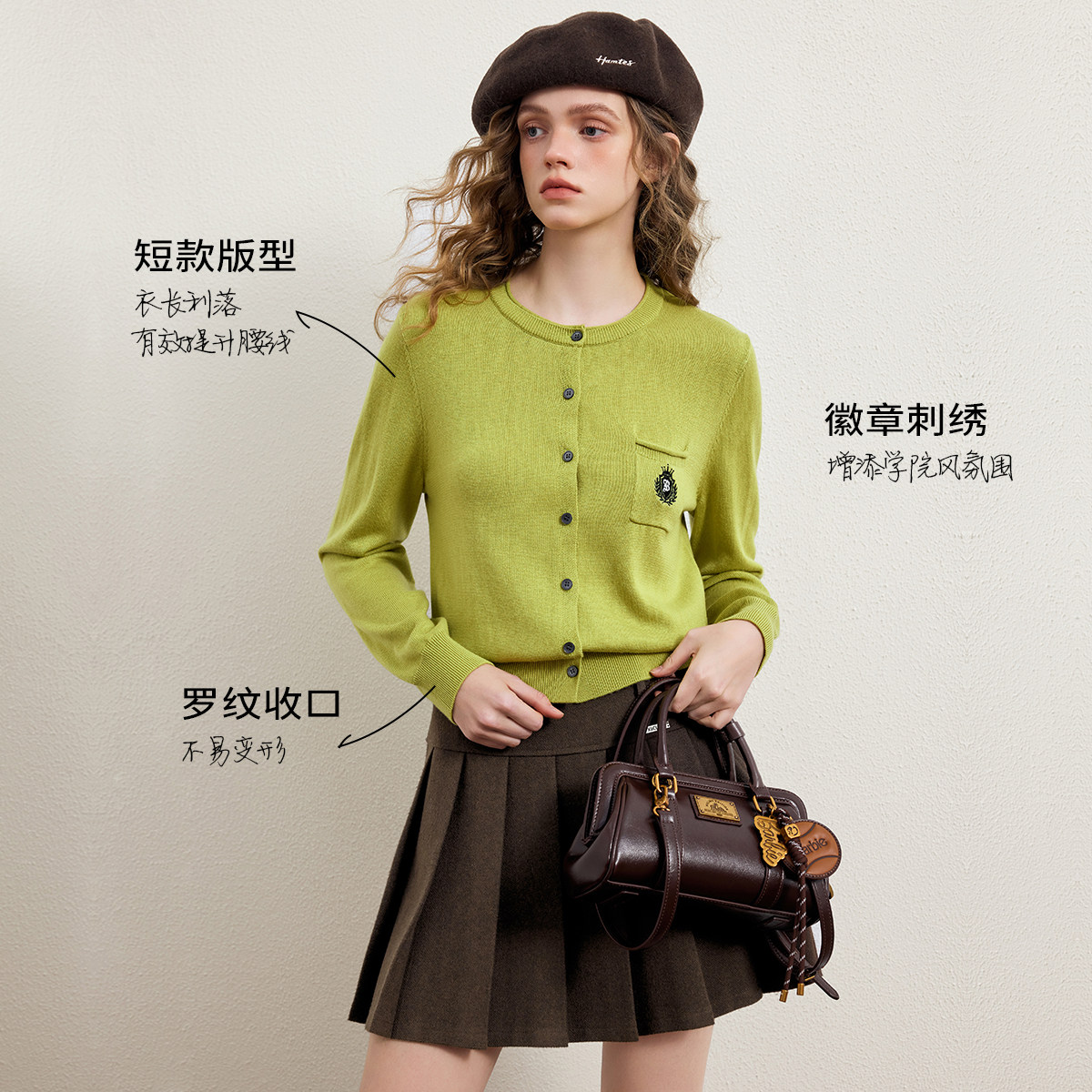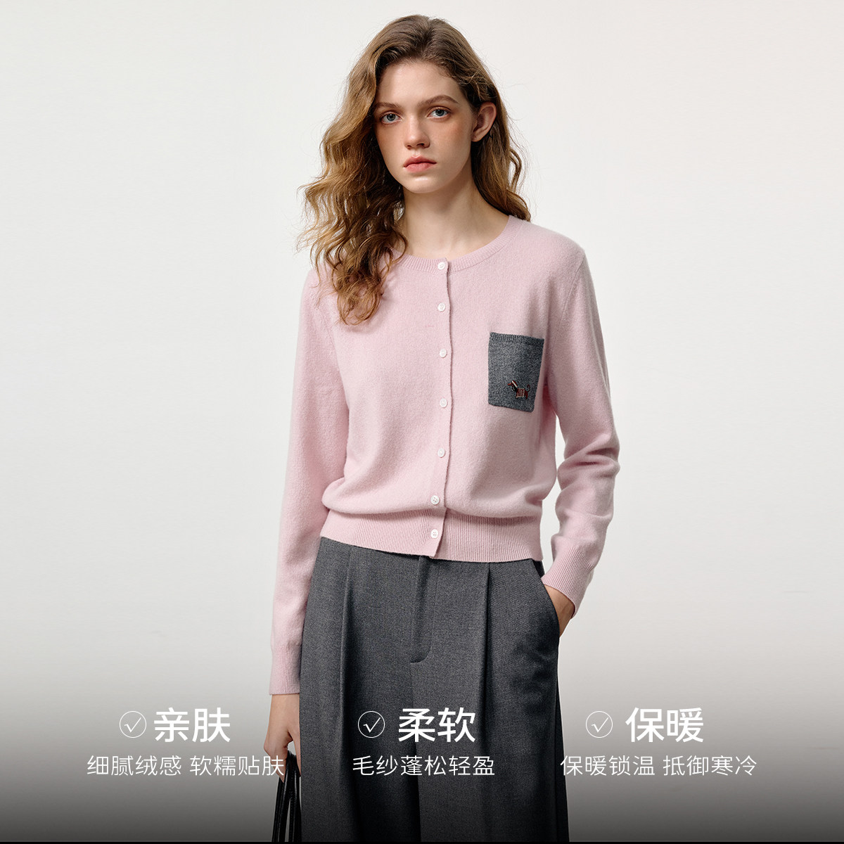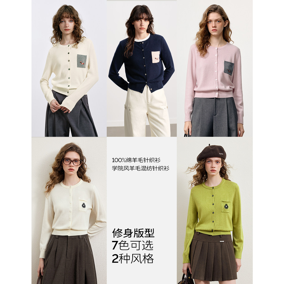 【100%绵羊毛】KBNE白色针织外搭开衫女2026春季新款长袖针织上衣