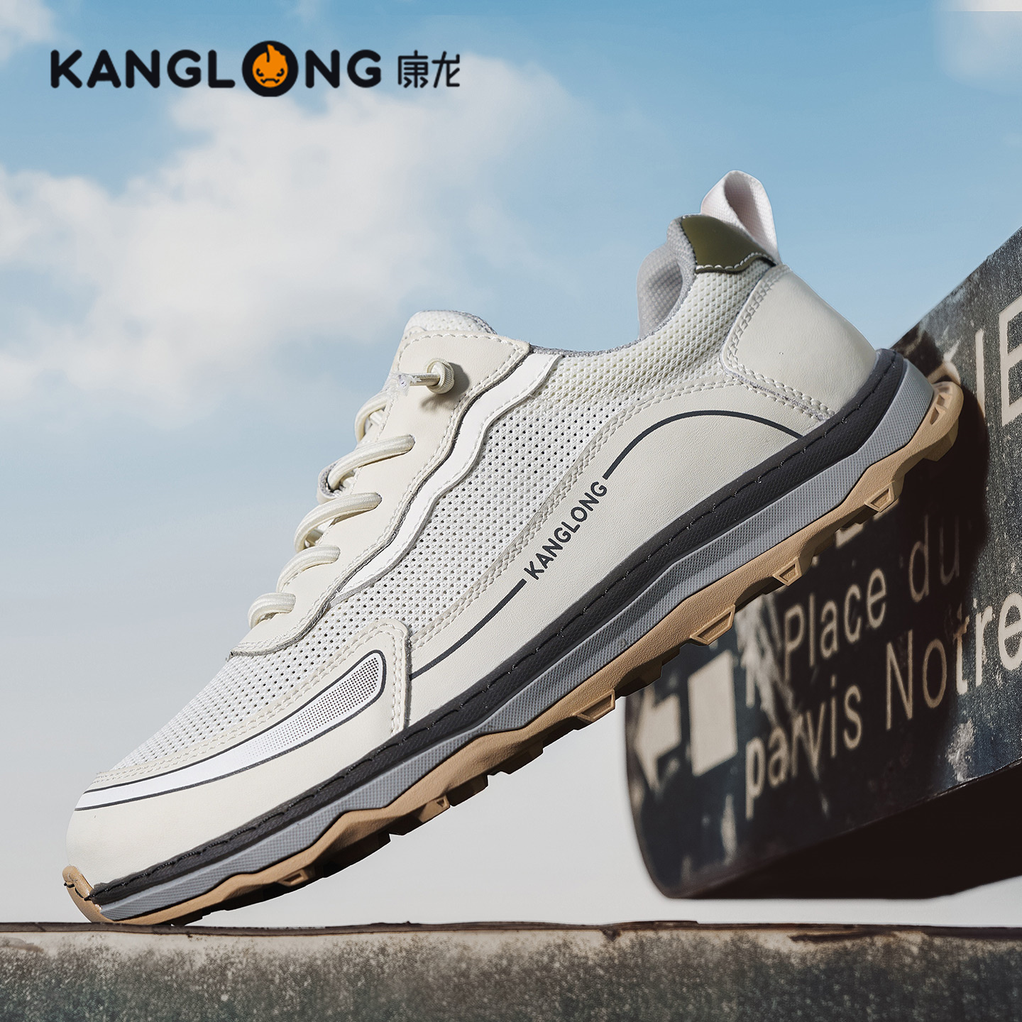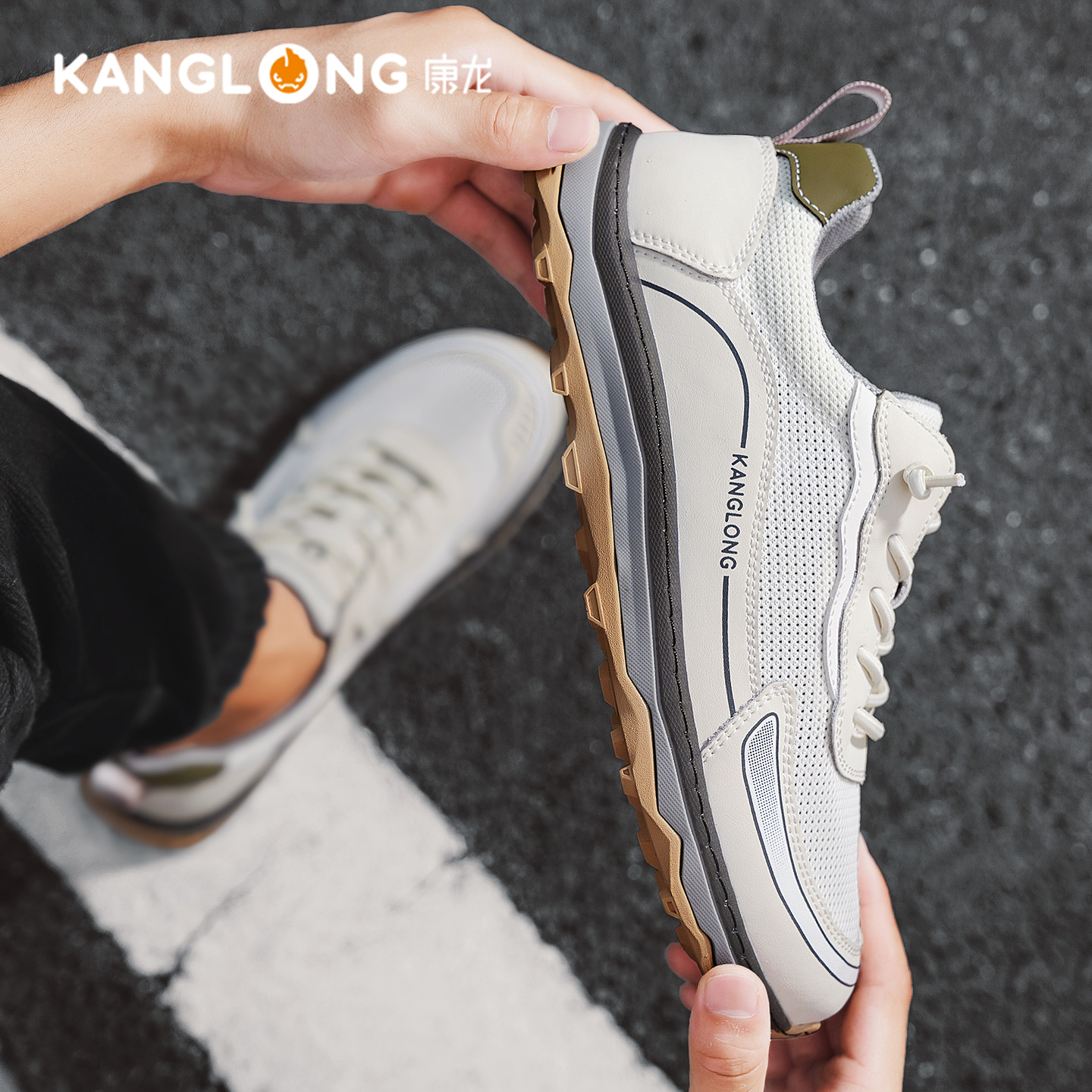 康龙男鞋2025春夏季新款网面透气休闲鞋小白鞋男士一脚蹬运动板鞋