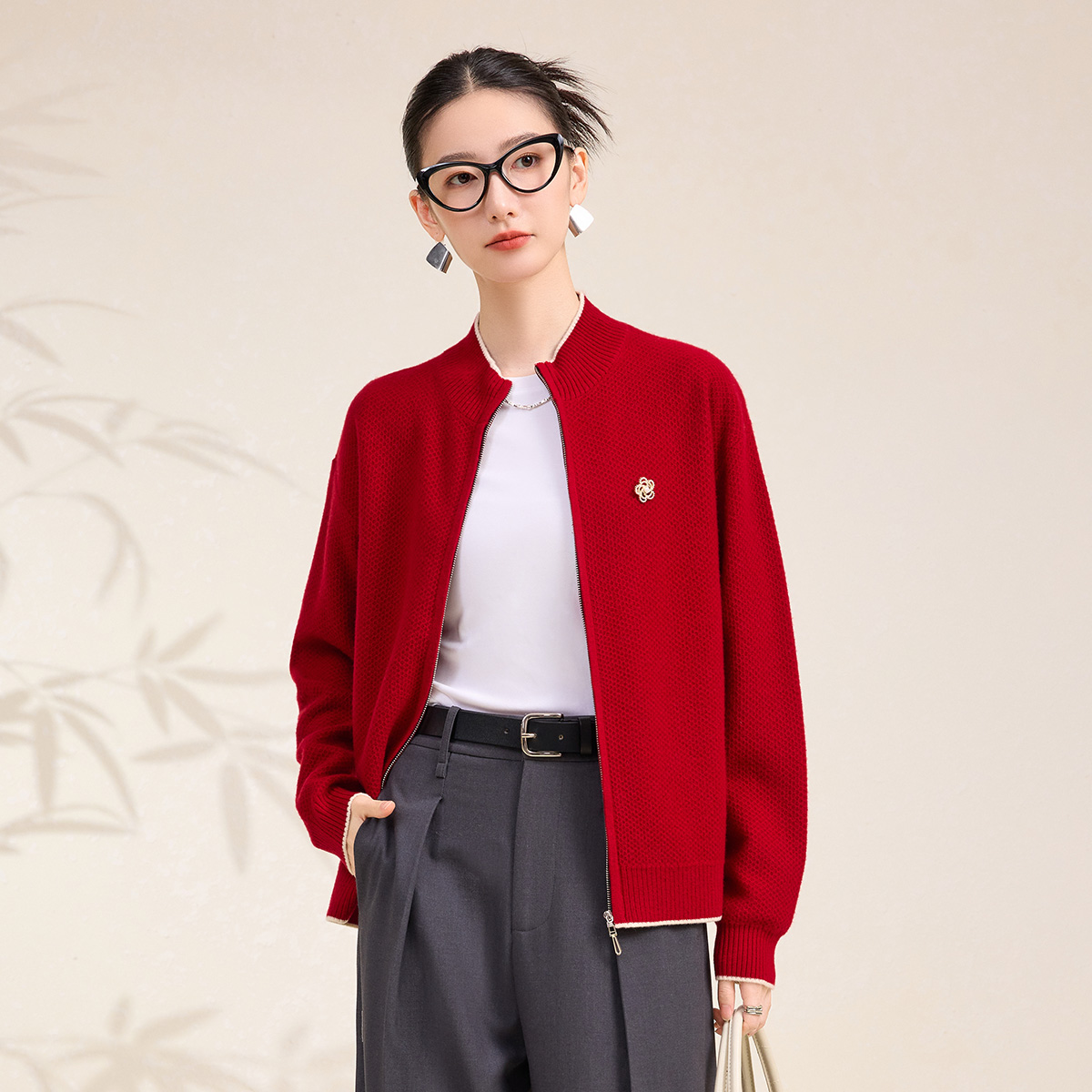 春竹100%绵羊毛2025秋冬新款加厚半高领拉链长袖羊毛衫女针织开衫