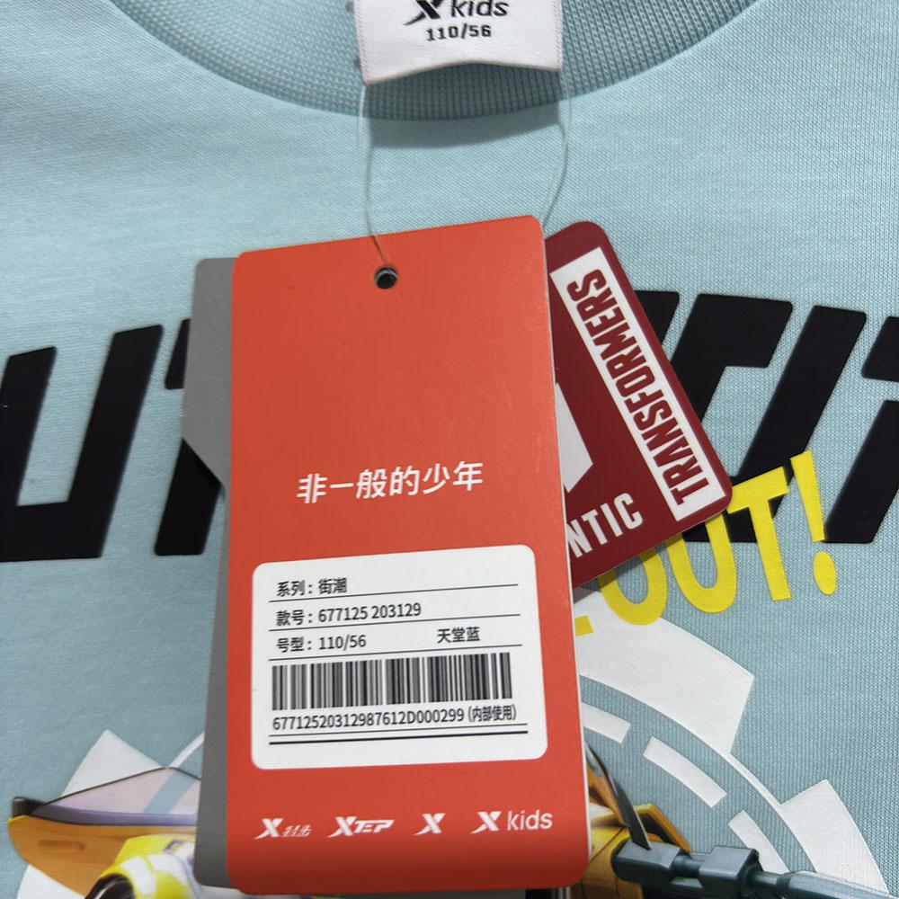 特步儿童正品春秋休闲针织卡通小男童运动圆领卫衣677125203129