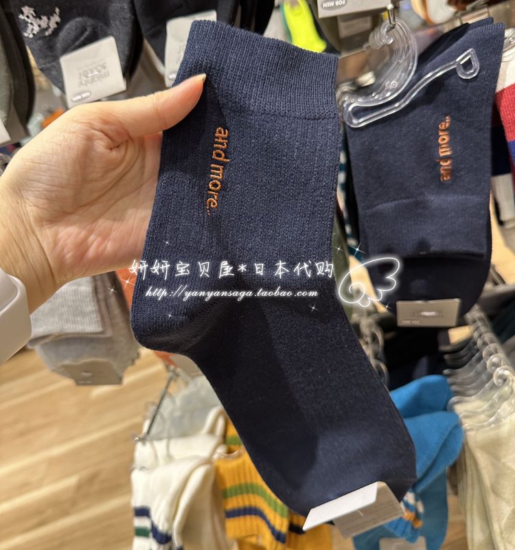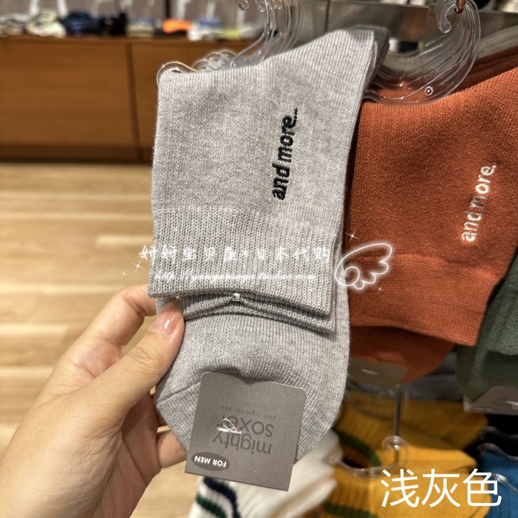 现货 日本购Tabio靴下屋秋冬新款简约字母刺绣棉中筒短袜子男