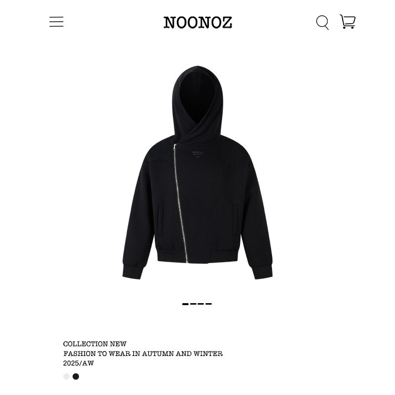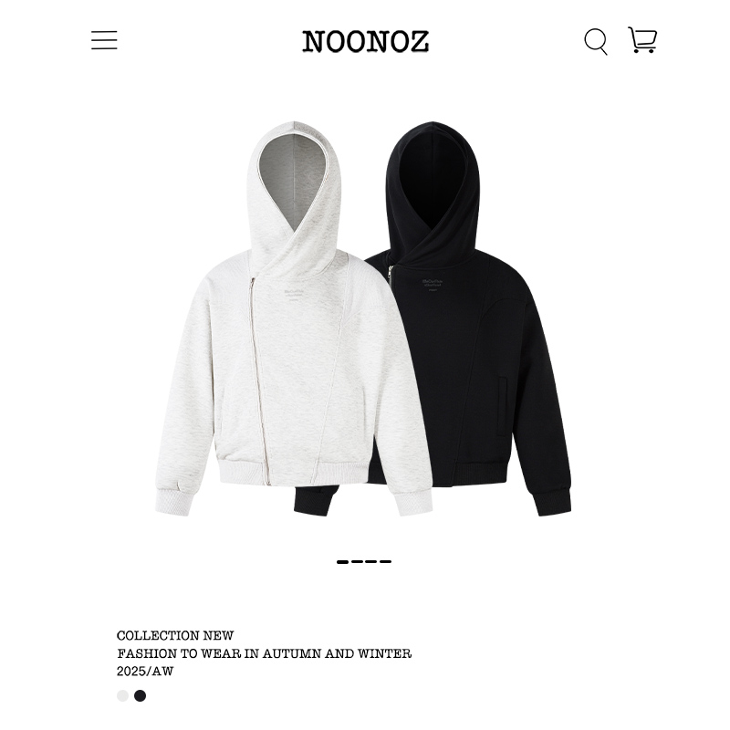 NOONOZ美式高街不规则斜拉链开衫卫衣男潮牌中性风设计感帽衫外套