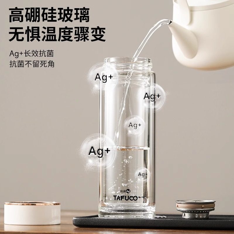 日本泰福高水杯双层玻璃杯男士高档耐高温商务杯子茶水分离泡茶杯