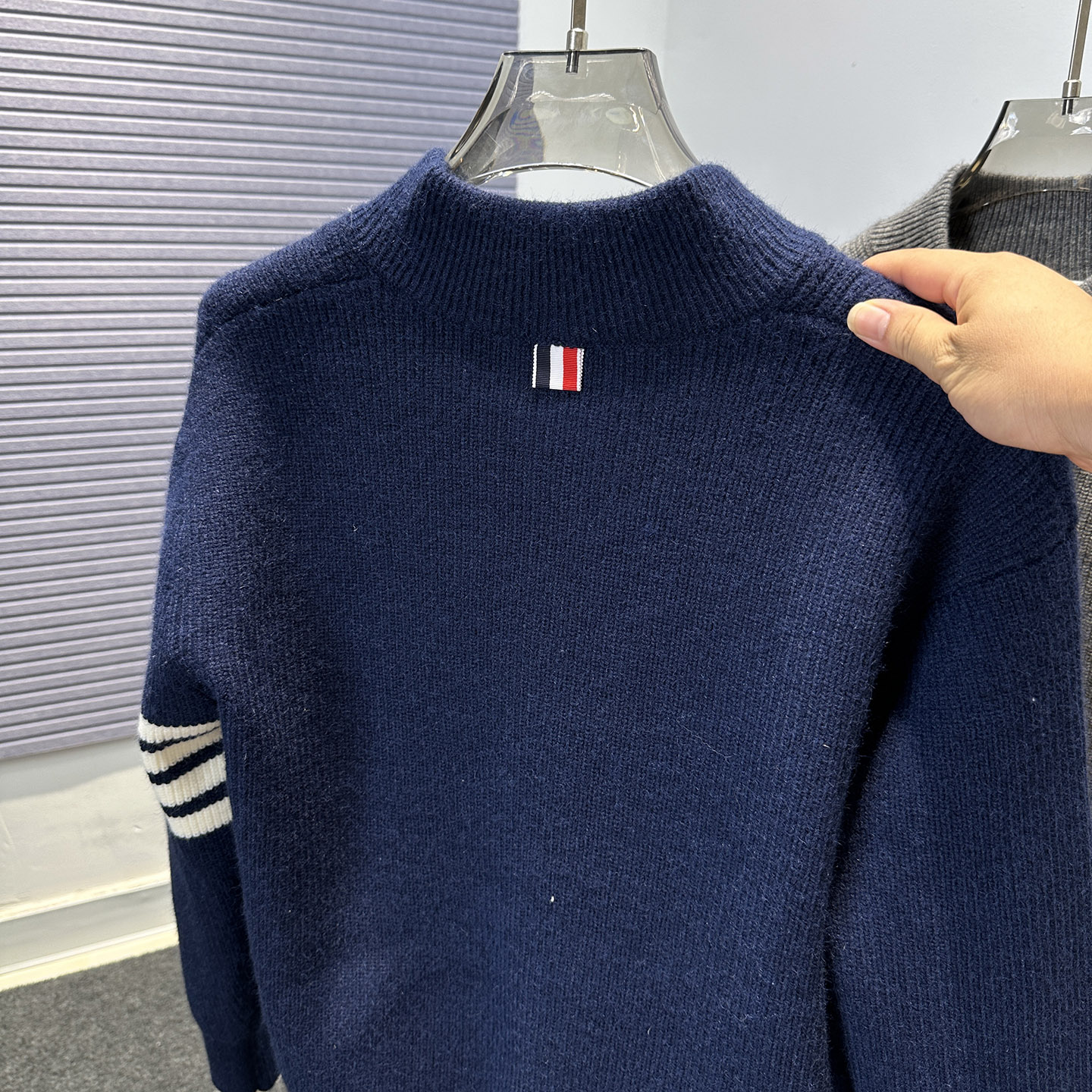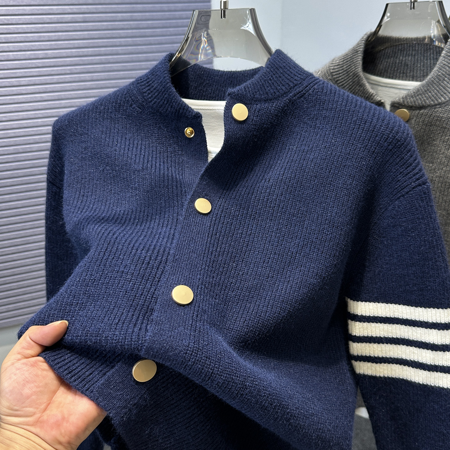 tb品牌棒球领开衫男针织衫秋冬季厚款高品质暗扣休闲百搭毛衣外套