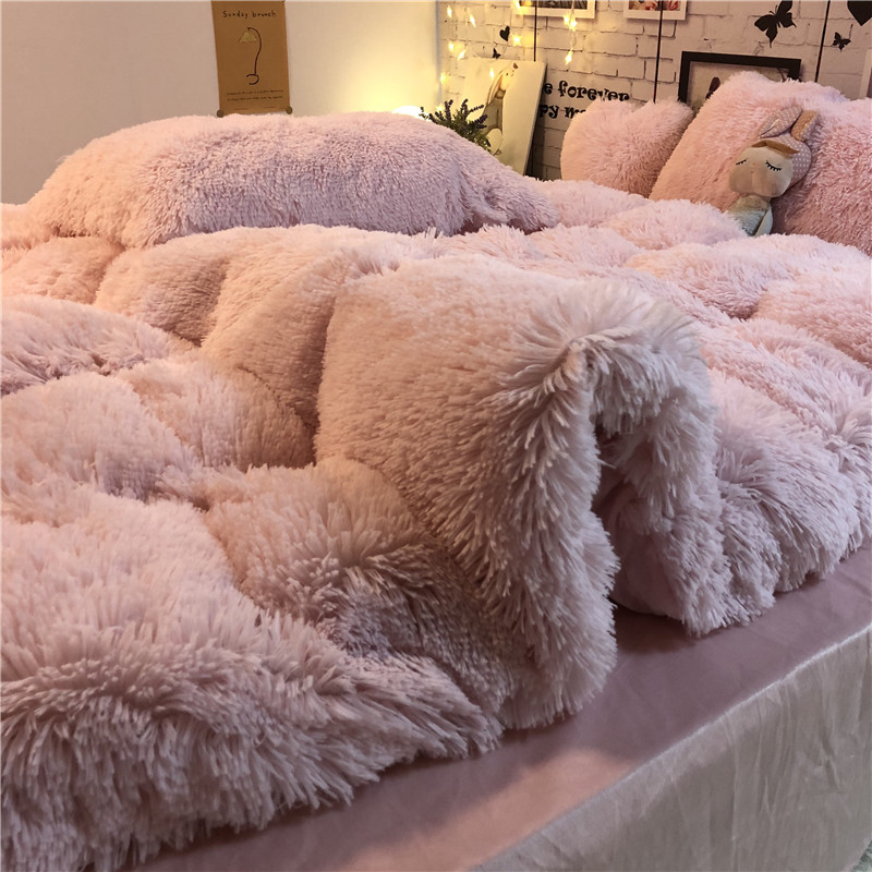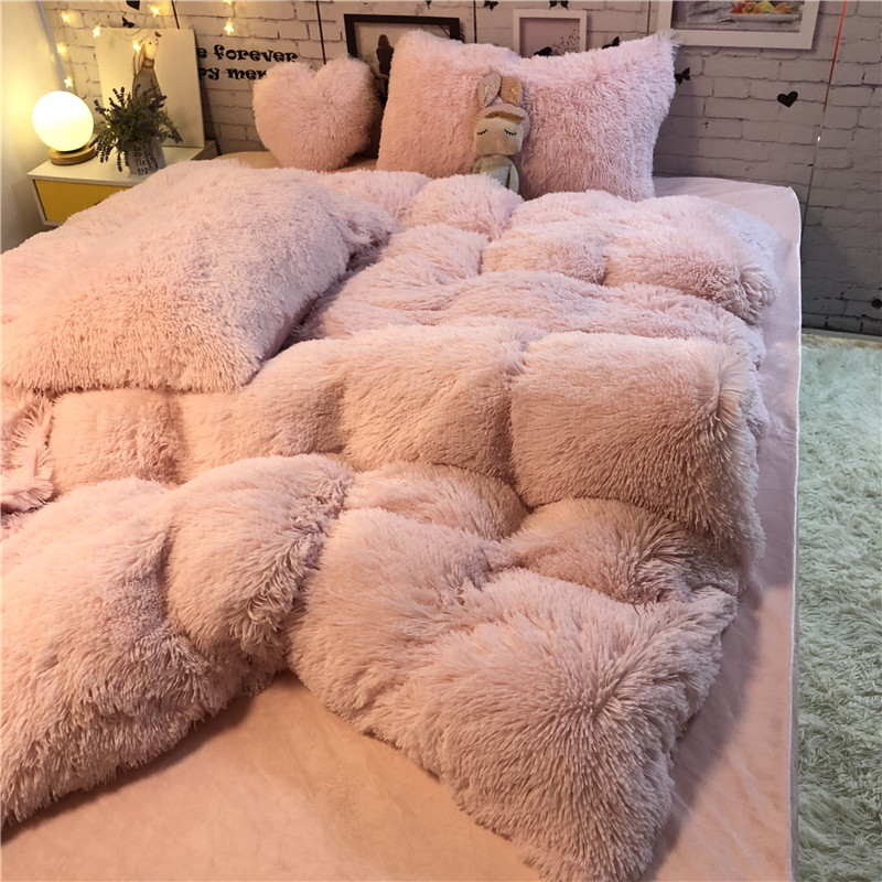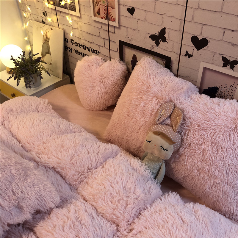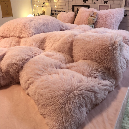 韩式浪漫典雅粉水貂绒四件套冬天保暖珊瑚绒被套床单公主床品1.8m