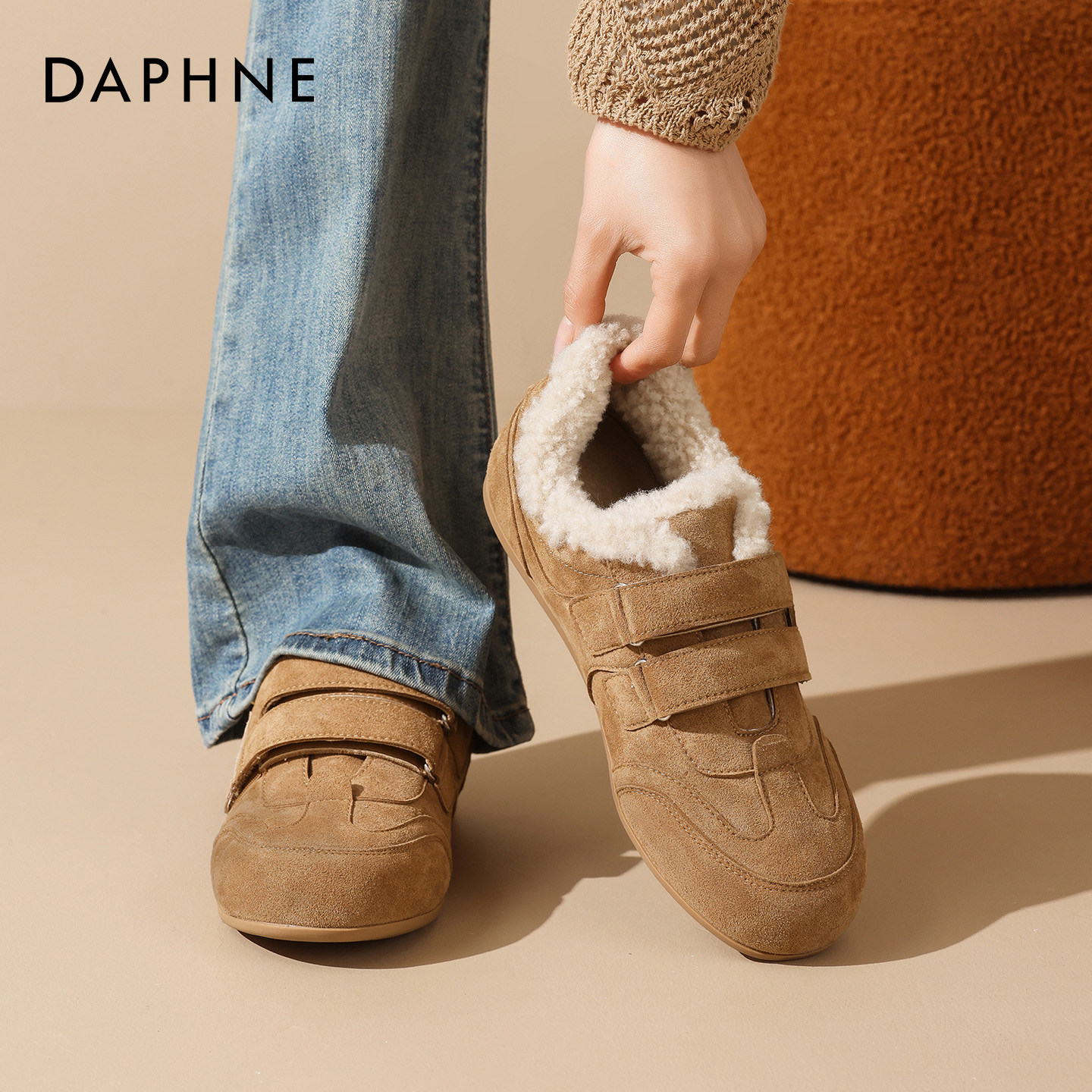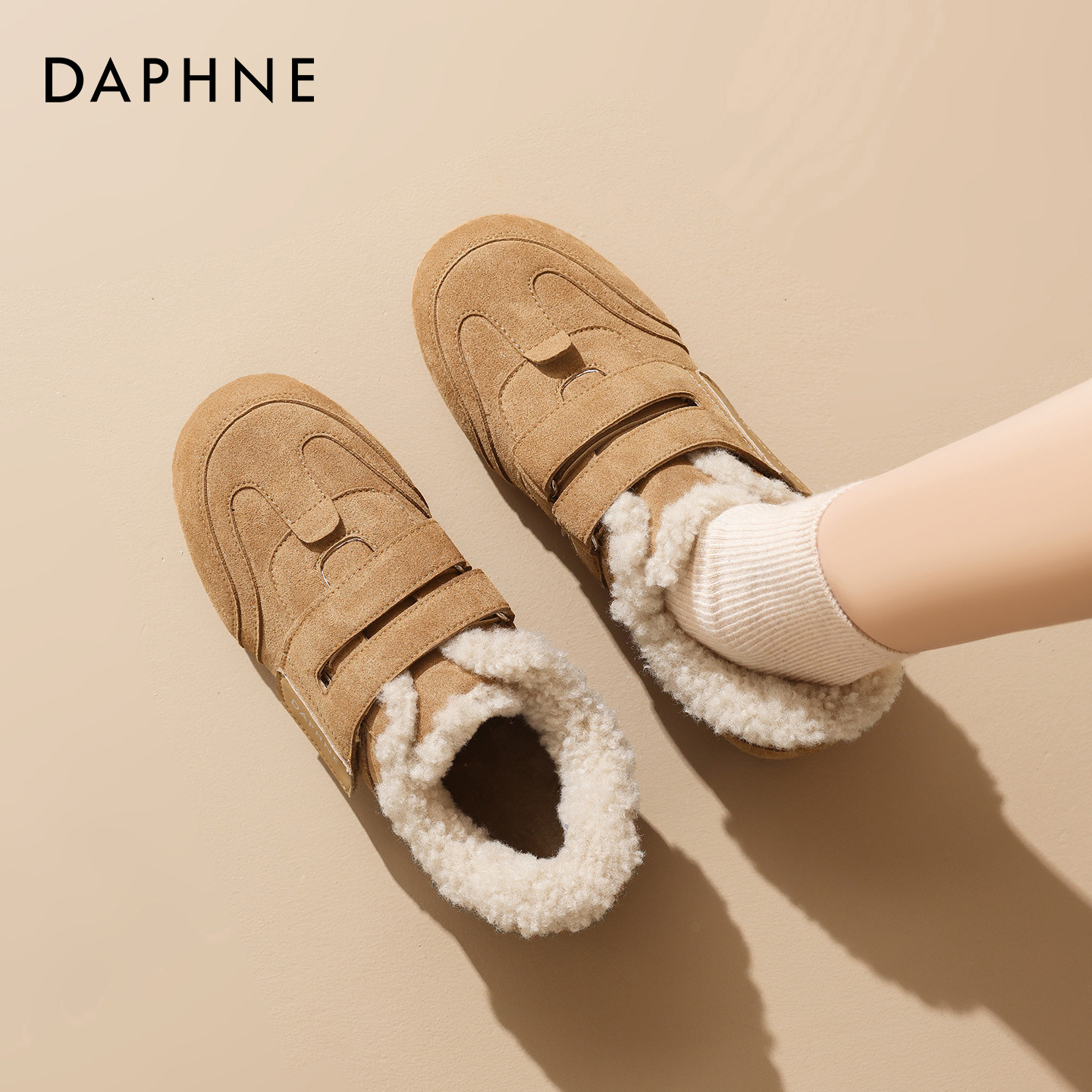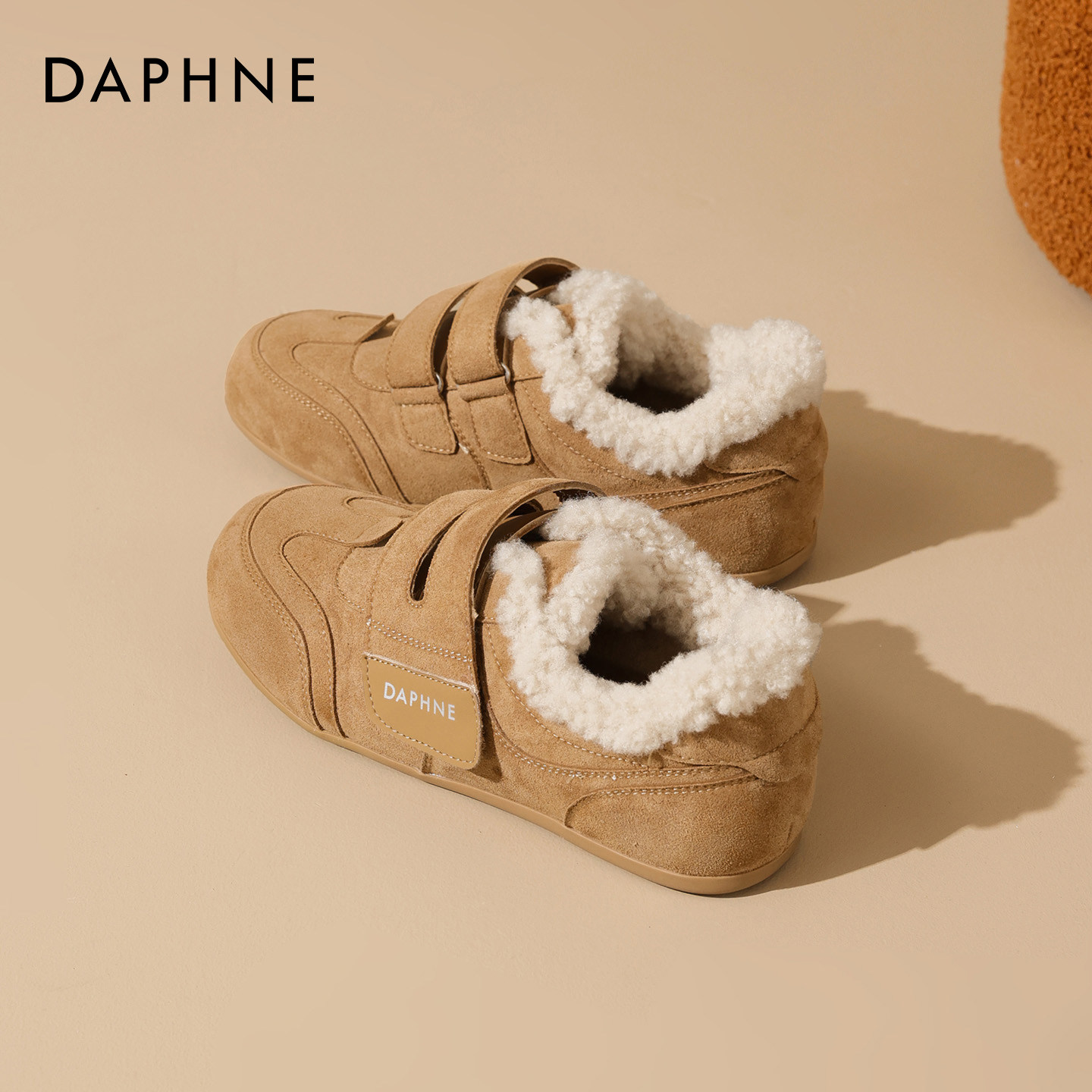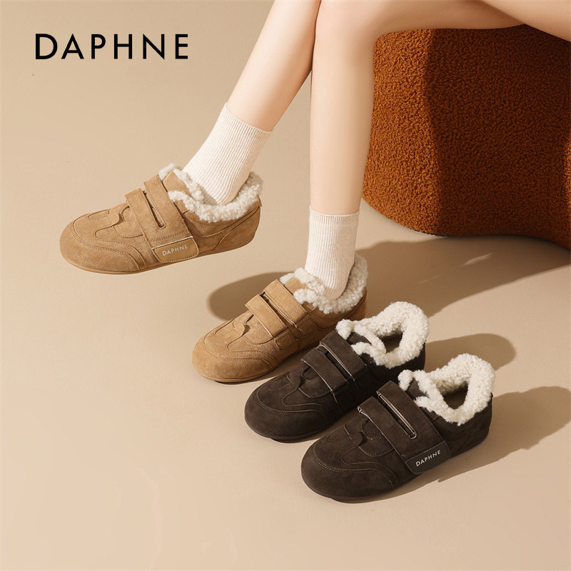 达芙妮加绒德训鞋女2025冬季新款保暖雪地靴毛毛棉鞋内增高休闲鞋