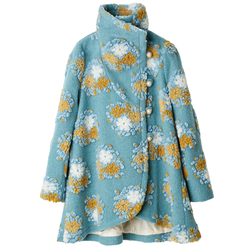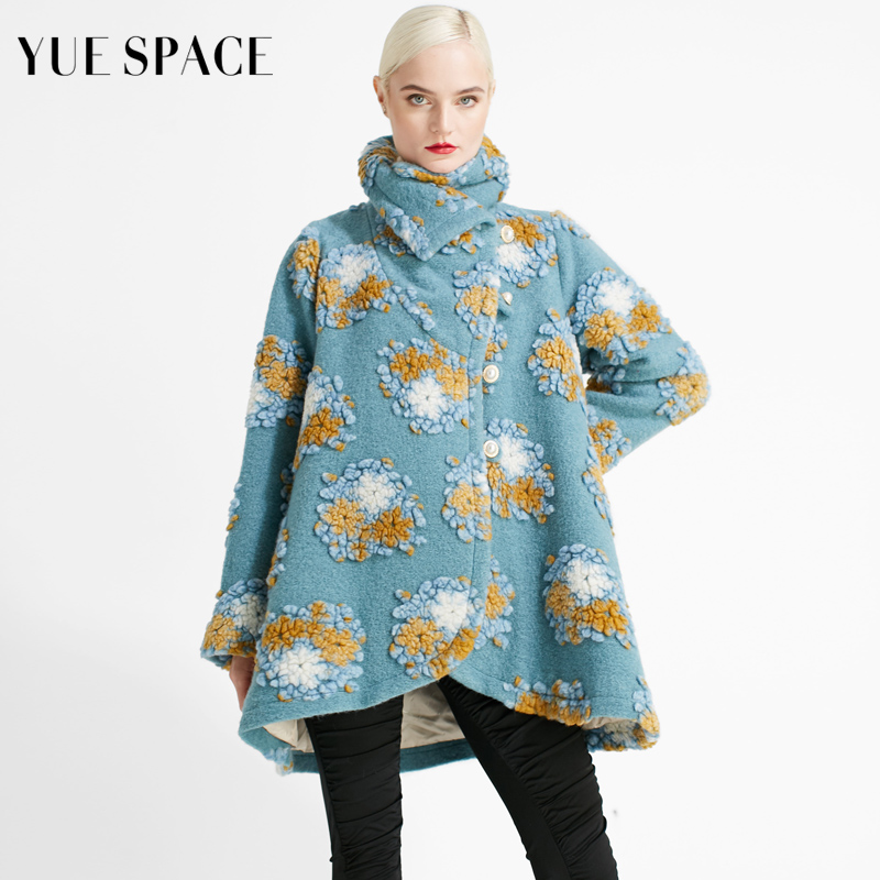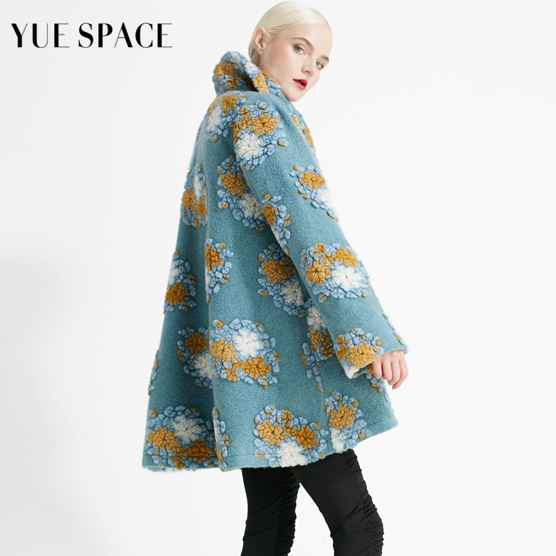 悦空间宽松中长款羊毛提花大衣女时尚毛呢外套A字单排扣原创设计